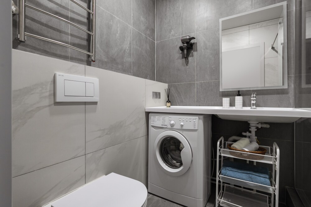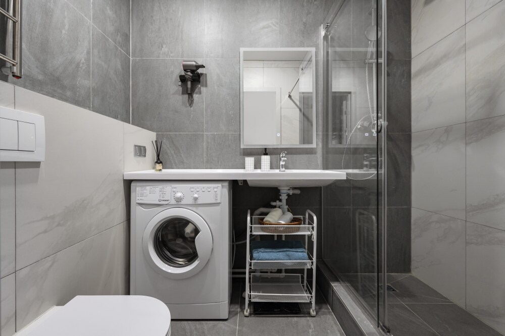 Собственный санузел, где есть душ и туалет. Утюг и фен для вашего удобства, а также стиральная машинка, чтобы всегда иметь свежую одежду под рукой.