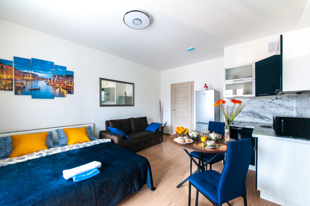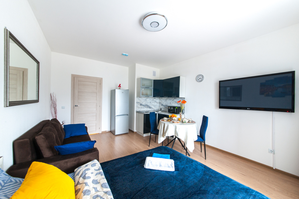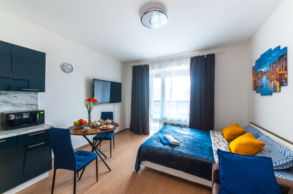 Уютная студия вмещает до 4-х гостей и находится на 2 этаже дома бизнес-класса в ЖК “Москва”. Новый комплекс бизнес-класса располагается в одном из красивейших мест Московского района, рядом с площадью Победы.