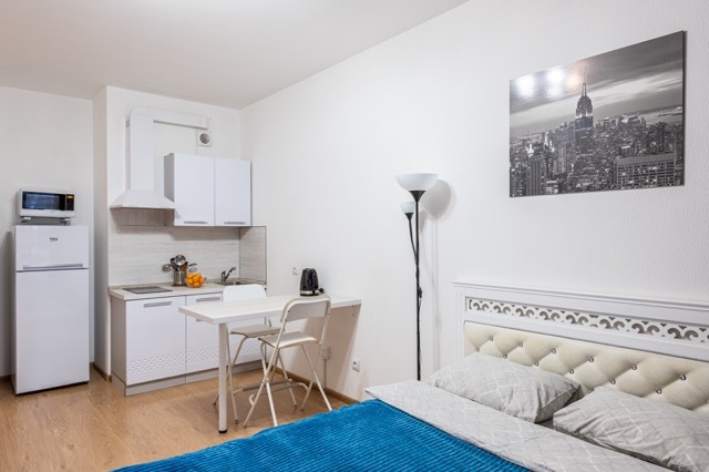 Уютная студия вмещает до 4-х гостей и находится на 8 этаже дома бизнес-класса в ЖК “Москва”. Новый комплекс бизнес-класса располагается в одном из красивейших мест Московского района, рядом с площадью Победы.