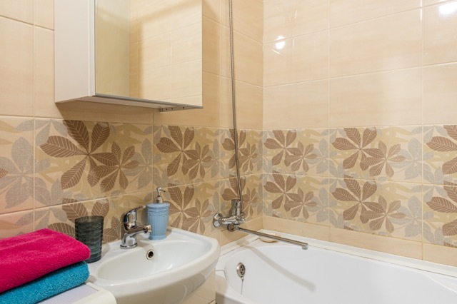 В квартире есть балкон и все необходимое для комфортного проживания: двуспальная кровать, раскладной диван, телевизор, кухонная зона со всем необходимым, совмещенный санузел.