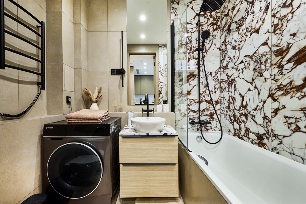 Оснащена умным домом, полностью оборудованной кухней, комфортной мебелью и быстрым Wi-Fi - идеальный вариант для отдыха или деловой поездки.