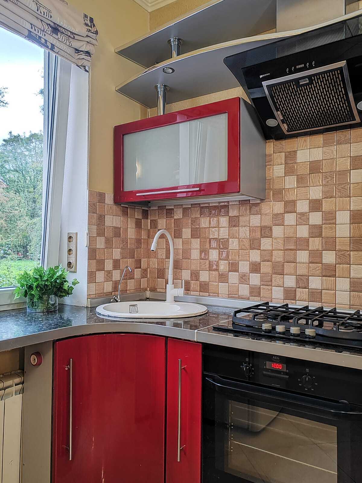 Квартира расположена на улице Коммунальной. В пешей доступности находятся зоопарк, парк отдыха и театр кукол. Район Амалиенау известен исторической застройкой, тихими улицами и архитектурой старого Калининграда. Рядом работают кафе, пекарни, рестораны и магазины.
