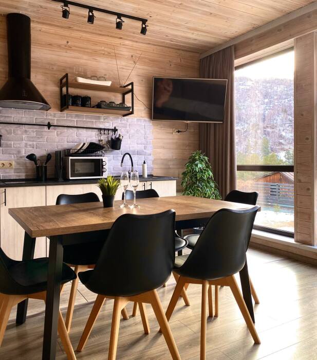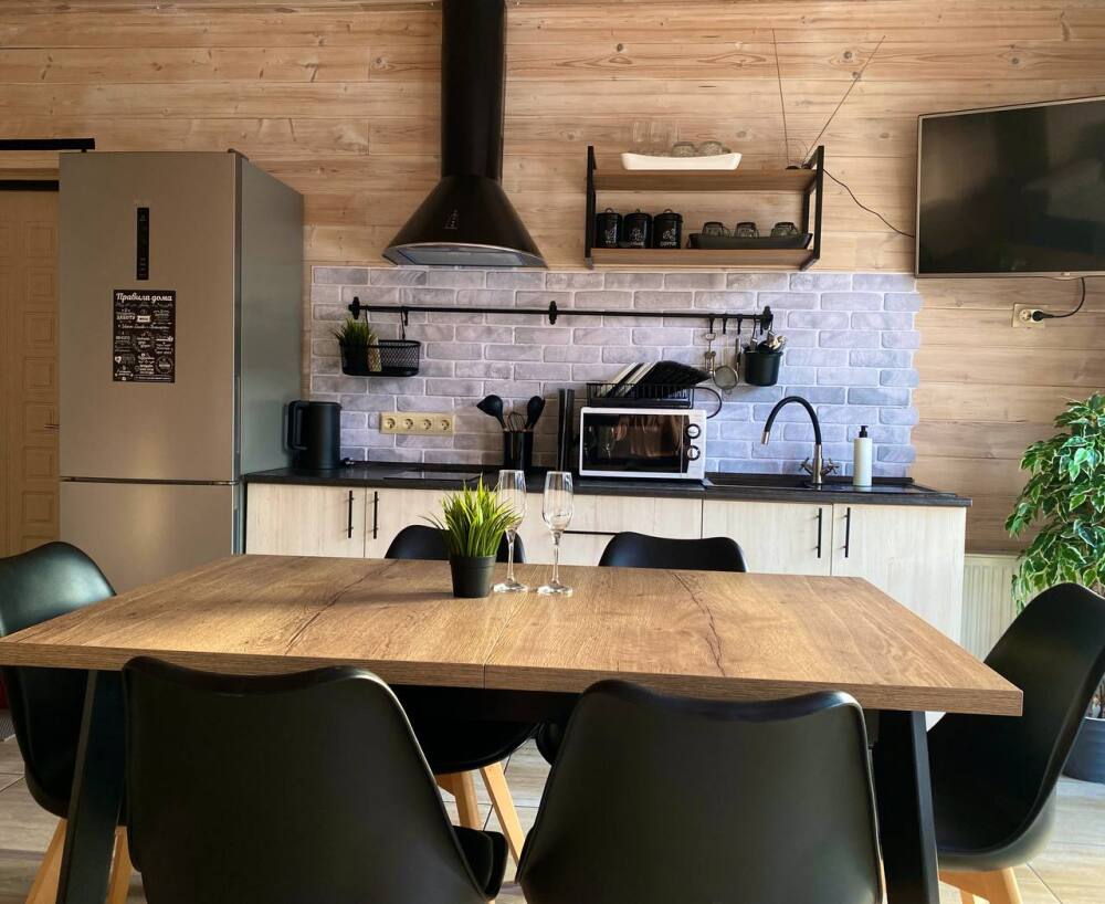 Тёплый, уютный, круглогодичный, отдельностоящий 1-этажный, 2-комнатный дом в стиле Лофт с панорамными окнами, кондиционером, просторная кухня-гостиная, 2 спальни.