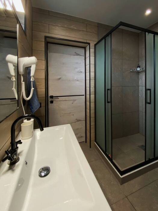 Удобства: кондиционер, система теплых полов, санузел, полотенца, душевая зона, фен, мыло, туалетная бумага.