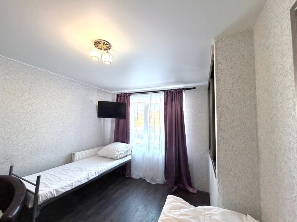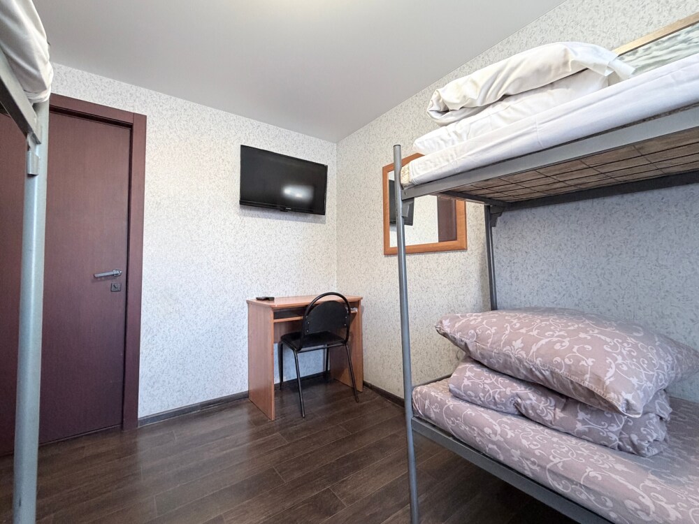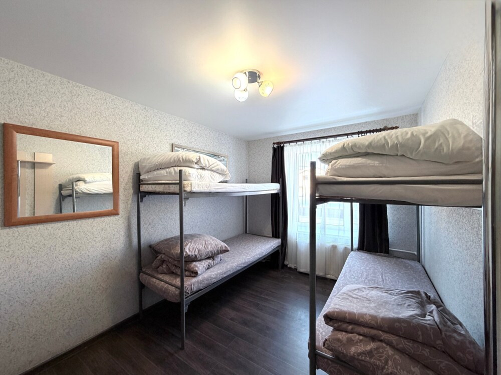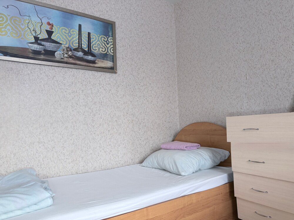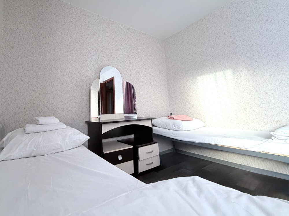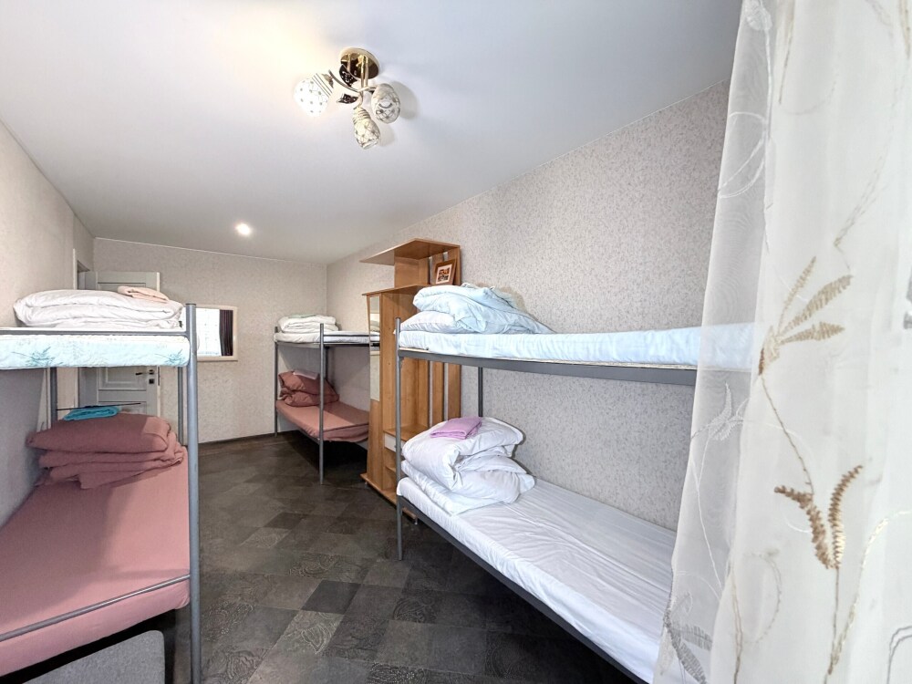 Место в общем четырехместном номере, в номере две двухярусные кровати, мебель, вай -фай, общие два санузла в доме, общая кухня, парковка своя, мангальная зона, беседка.