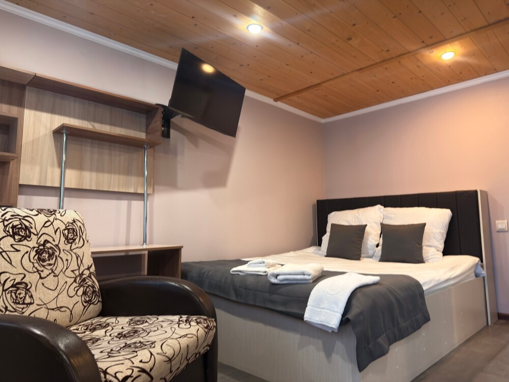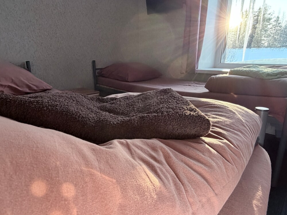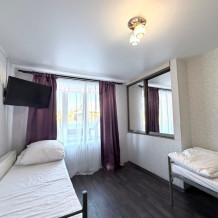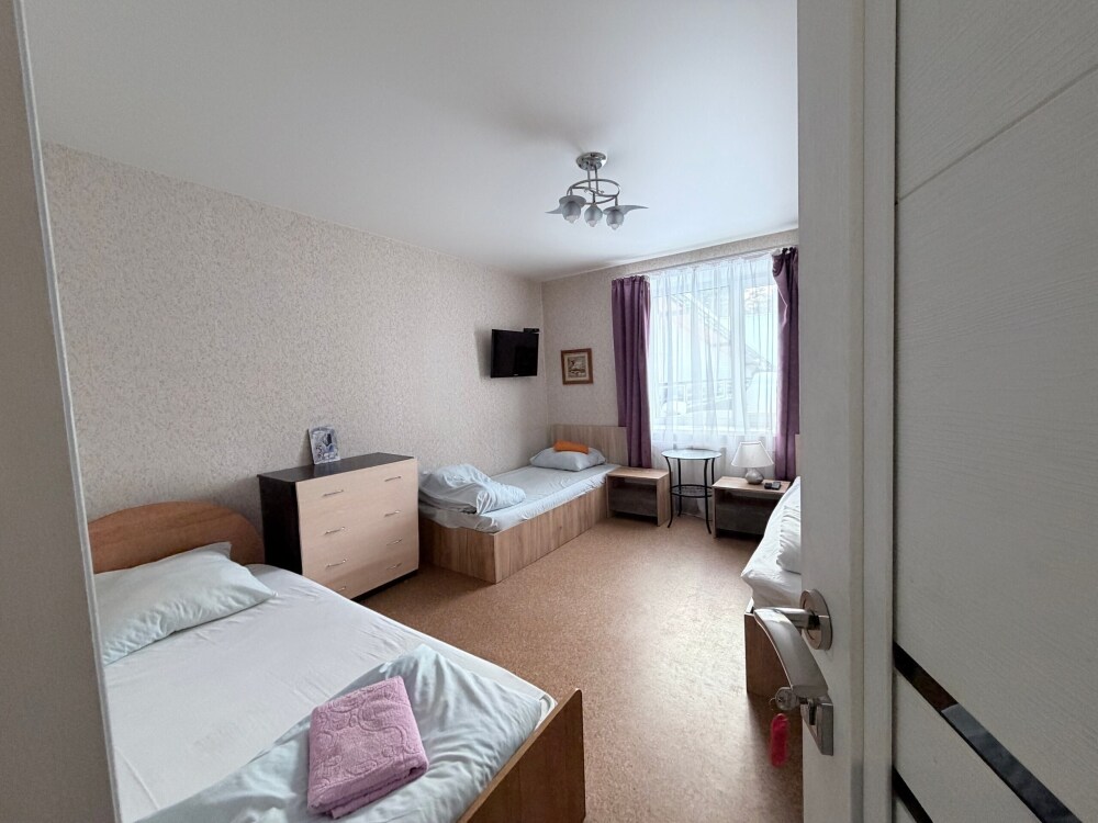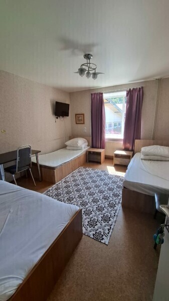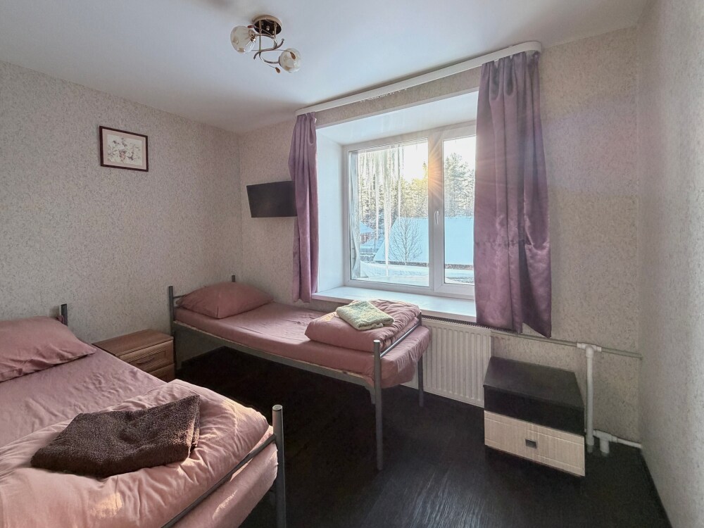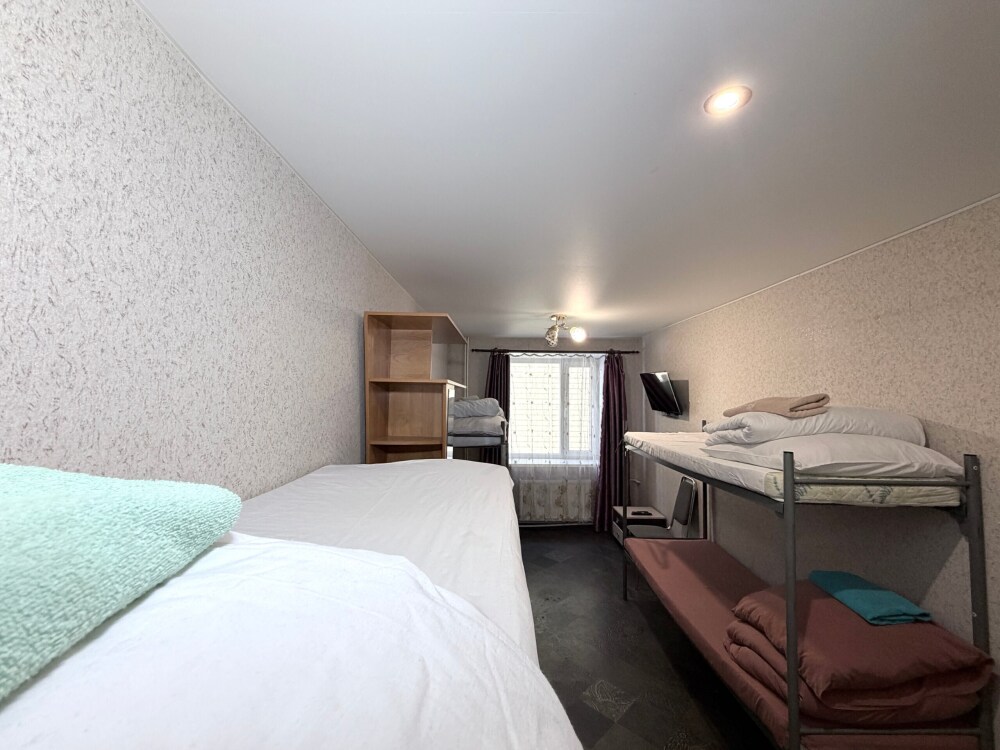 Место в общем четырехместном номере, в номере две двухярусные кровати, мебель, вай -фай, общие два санузла в доме, общая кухня, парковка своя, мангальная зона, беседка.