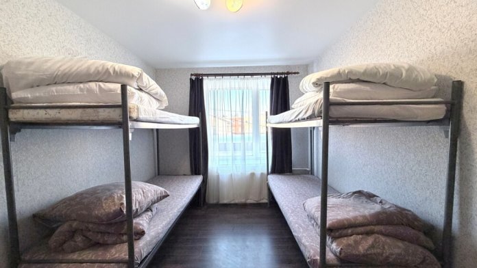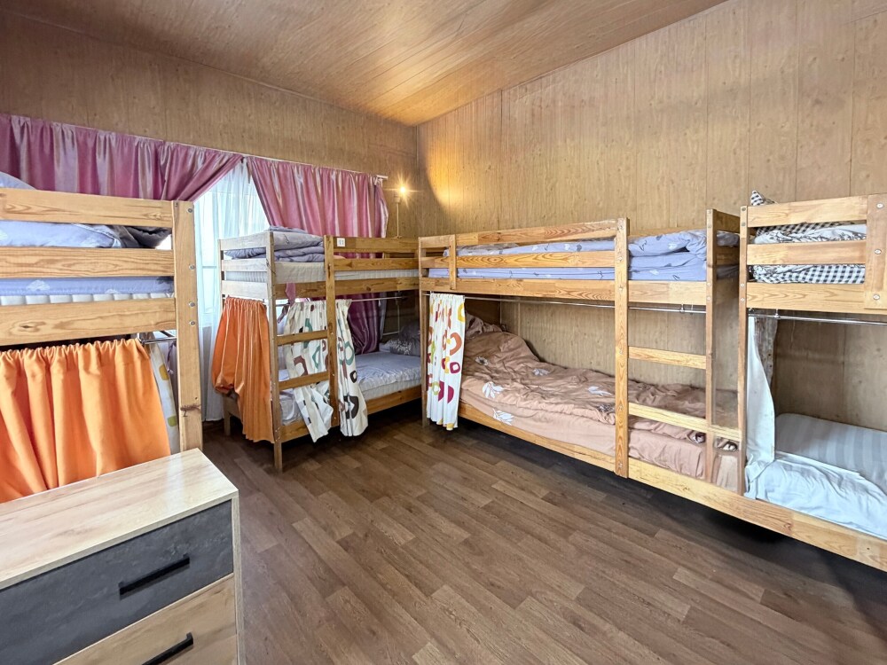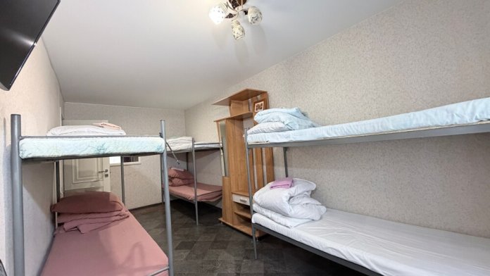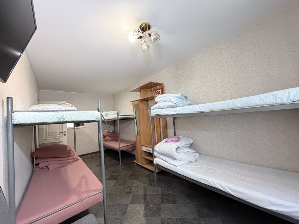 Койко- место в общем восьмиместном номере с общим санузлом, кухня общего пользования, вай-фай, бесплатная парковка, мангальная зона на территории