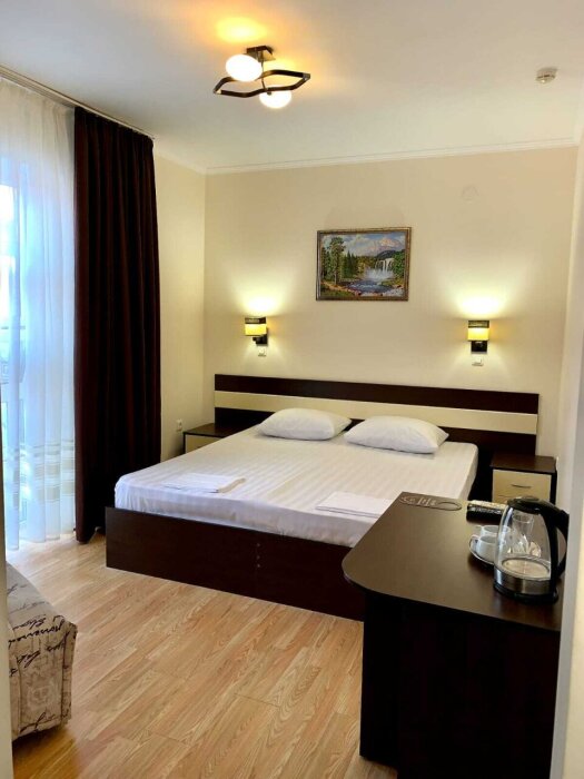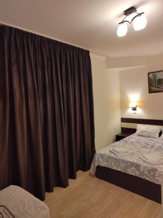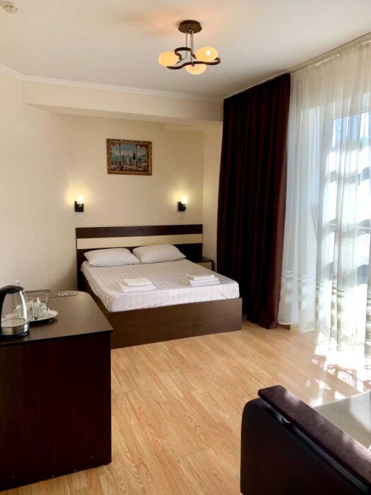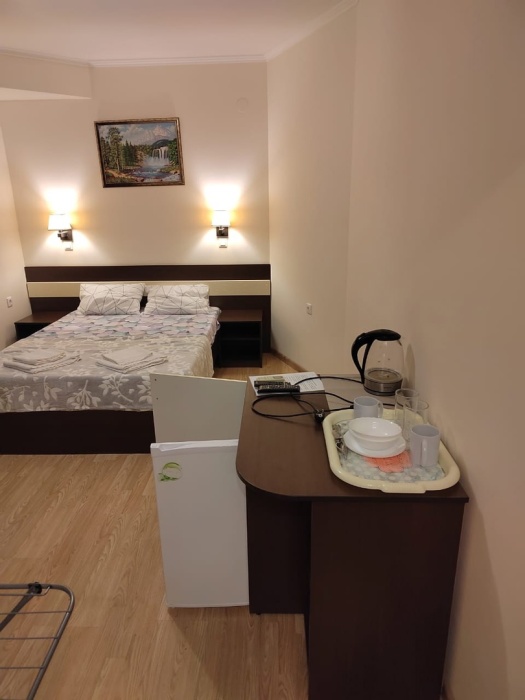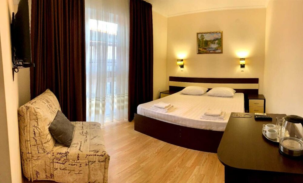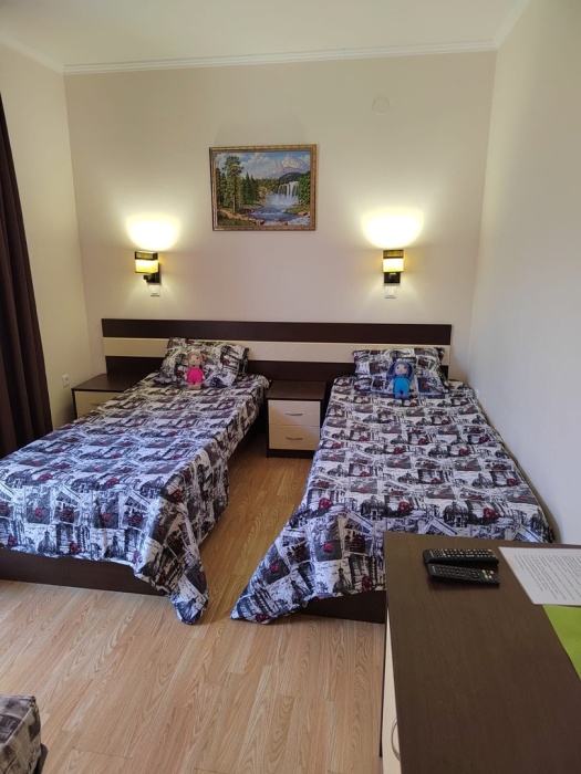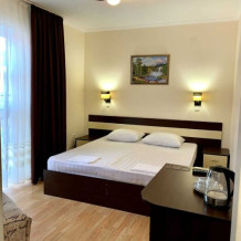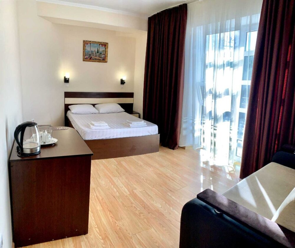 Отель построен в 2018 году и представляет собой сочетание умеренной цены и качества оказываемых услуг. Комфортабельные номера и отличный сервис плюс близость моря, создают идеальные условия для полноценного отдыха. На расстоянии 300-400 метров протянулся великолепный просторный песчаный пляж с лежаками, зонтиками и кабинками для переодевания. На пляже имеются все виды водных развлечений. По соседству расположен аквапарк.