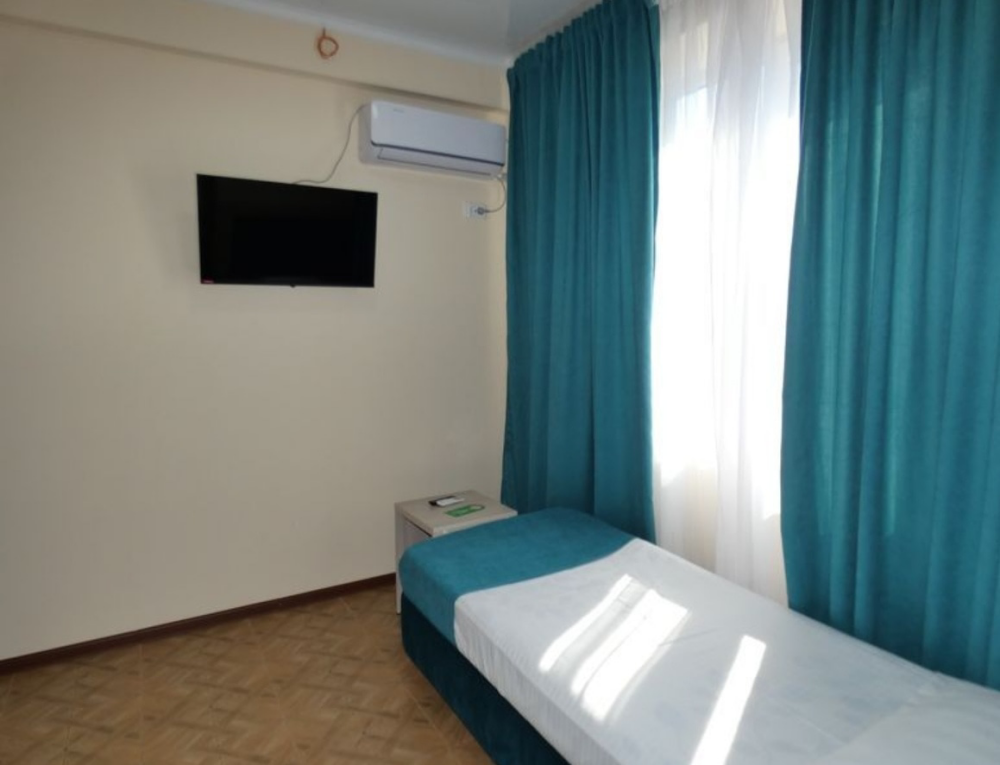 Номер отвечает всем современным требованиям комфорта и отдыха, кровать с ортопедическим матрасом и мягким изголовьем с возможностью разделения на две кровати, рабочим местом, выходом в интернет, телевизором с плоским экраном и спутниковым TV, звуконепроницаемыми окнами.