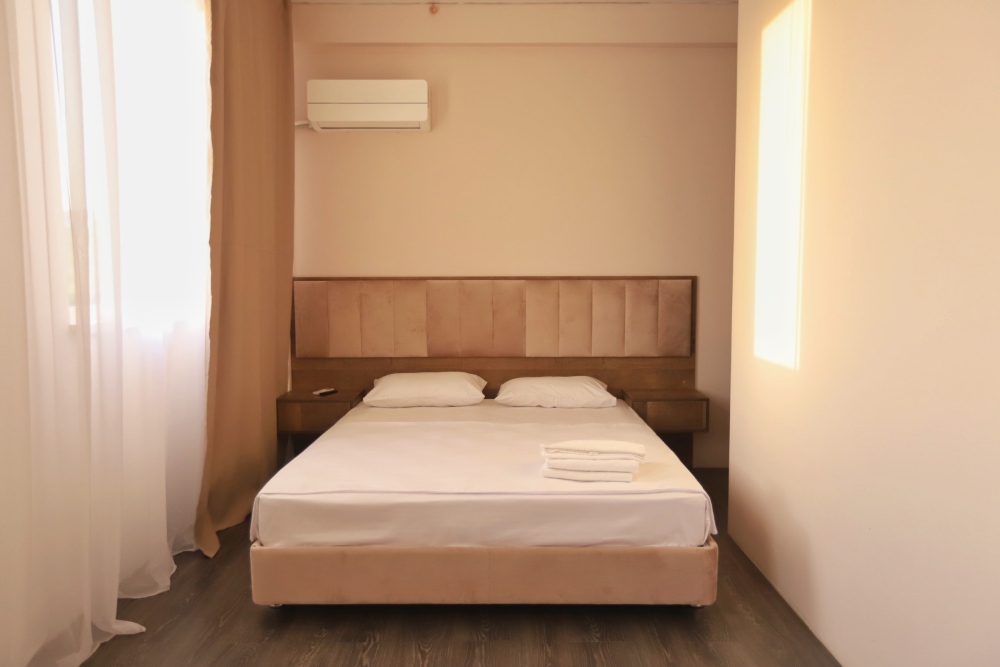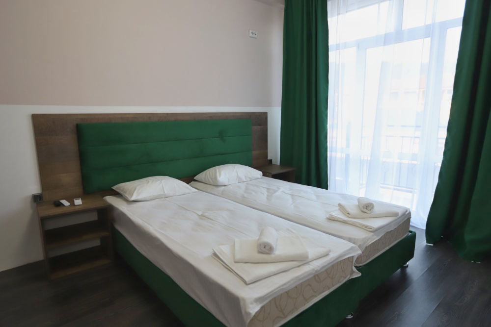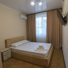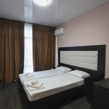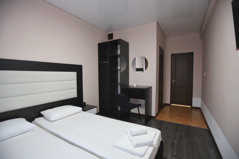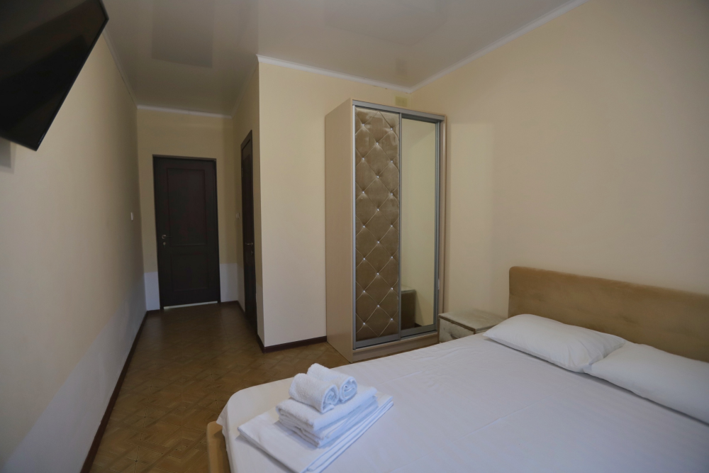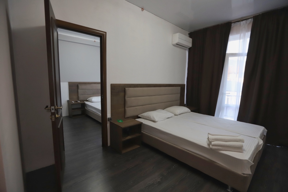 Большой однокомнатный номер рассчитан на размещение четырёх человек на двух основных и одном дополнительном месте (диван-кровать). Номер отвечает всем современным требованиям комфорта и отдыха, оборудован индивидуальной системой климат контроля, кроватью с ортопедическим матрасом и мягким изголовьем с возможностью разделения на две кровати, выходом в интернет, телевизором с плоским экраном и спутниковым TV, звуконепроницаемыми окнами.