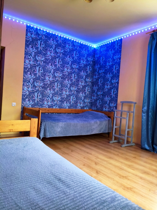 Комфортные апартаменты с тремя раздельными спальнями. Детская, с двумя односпальными кроватями, в других двухспальные. Кухня-студио оборудована всем необходимым: газовая плита, мойка, микроволновка, посуда и вместительных холодильник.
