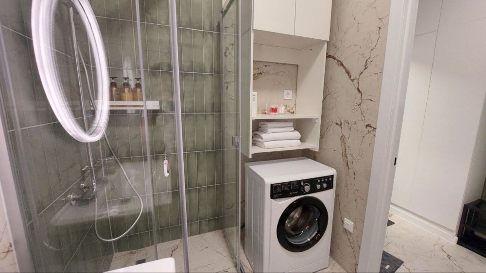 - Холодильник, варочная поверхность, стиральная машина, микроволновка, чайник и капсульная кофемашина.