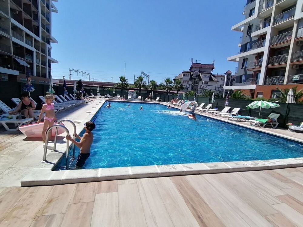 Широкая береговая линия, хорошо оборудованный и обновлённый пляж, лучший в Сочи, что подтверждает международная неоднократная награда голубой флаг, кафе, магазины