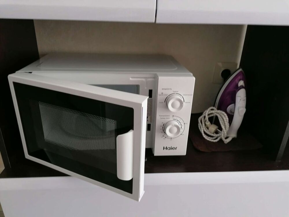 - Имеется кухонная зона со всеми принадлежностями. Чайник, микроволновая печь, духовка для собственной выпечки, набор посуды и варочная поверхность для самостоятельного приготовления еды.