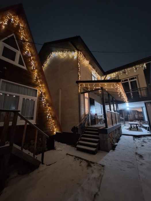 Развитая инфраструктура, асфальтированная чистая улица. На территории 4 дома разных категорий, размещение от 4-7 человек. Есть парковка, беседки, веранды, мангальная зона, красивое освещение сделает ваши вечера еще уютнее.
