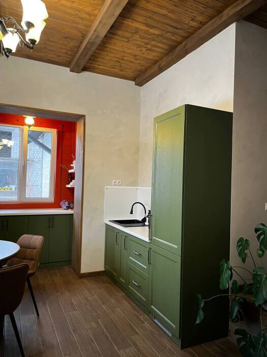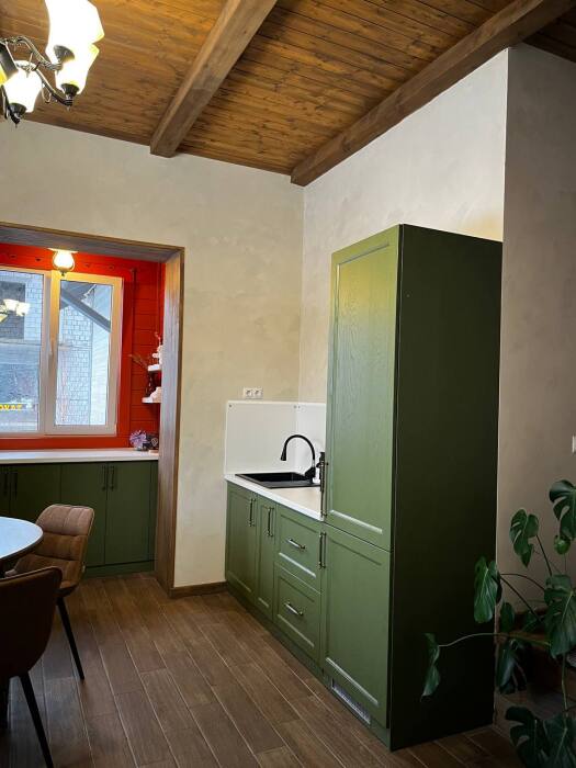 Апартаменты на 6 человек, дизайн, качественная мебель и свежий ремонт. В доме есть кухонный уголок, посуда, обеденная зона, теплый пол.