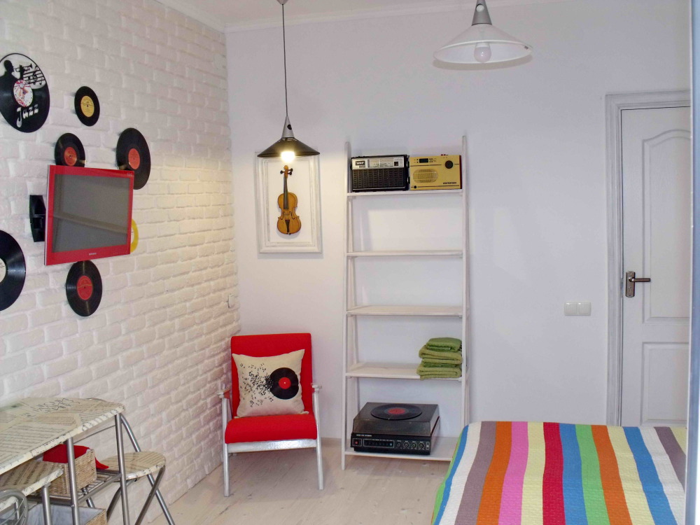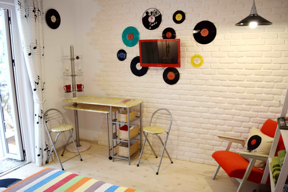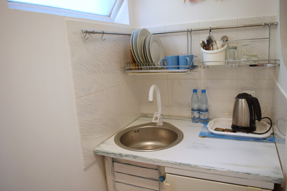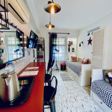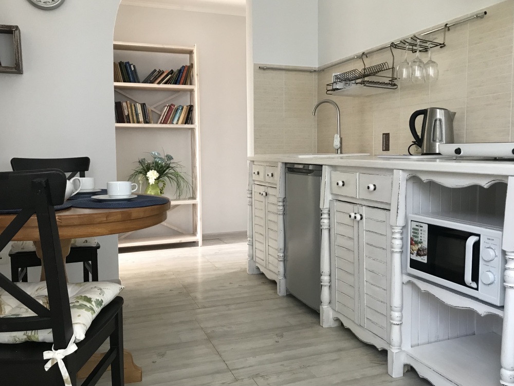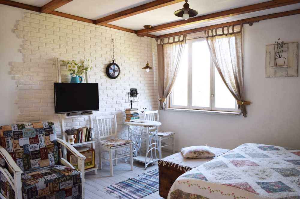 Уютный, комфортный номер с отдельным входом,  террасой или балконом; оформлен винтажными, авторскими работами, мини-кухня (мойка, электрический чайник, посуда, холодильник, микроволновая печь).