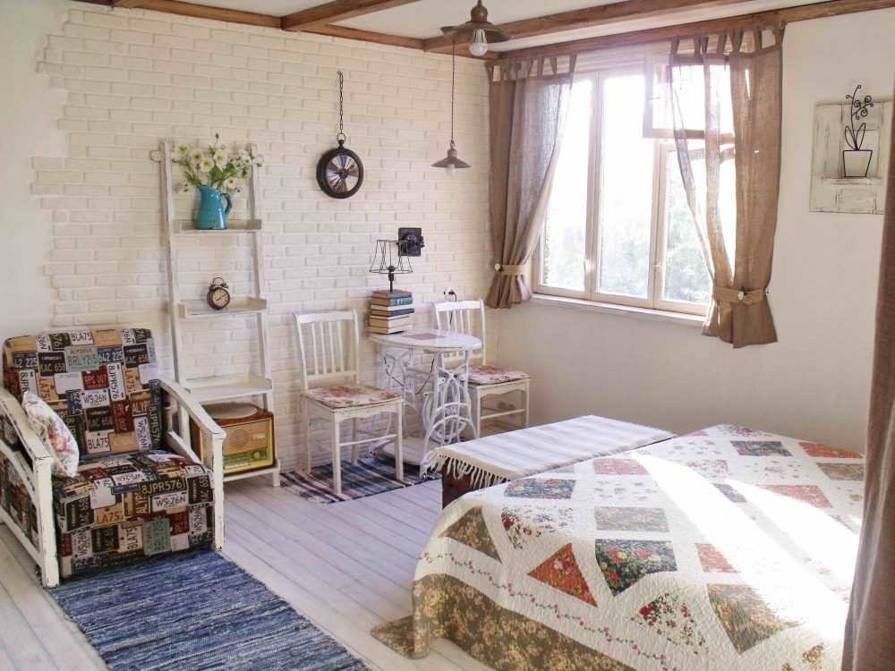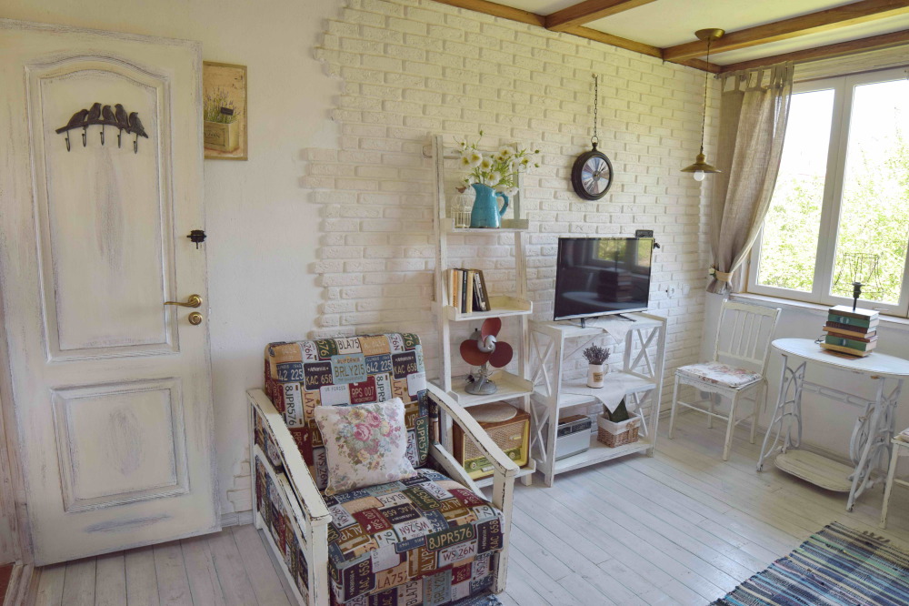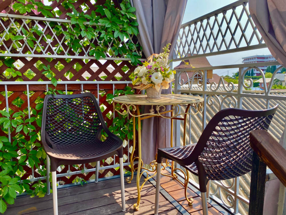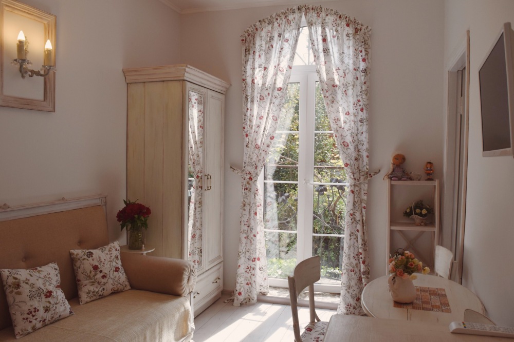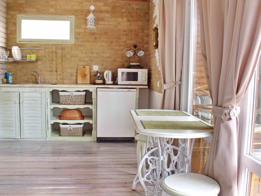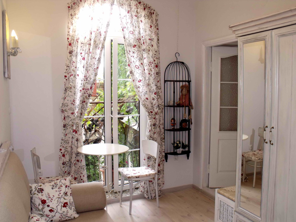 Номер в стиле «шебби», мини-кухня, отдельный вход, «французский балкончик» и большая терраса.