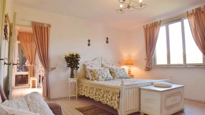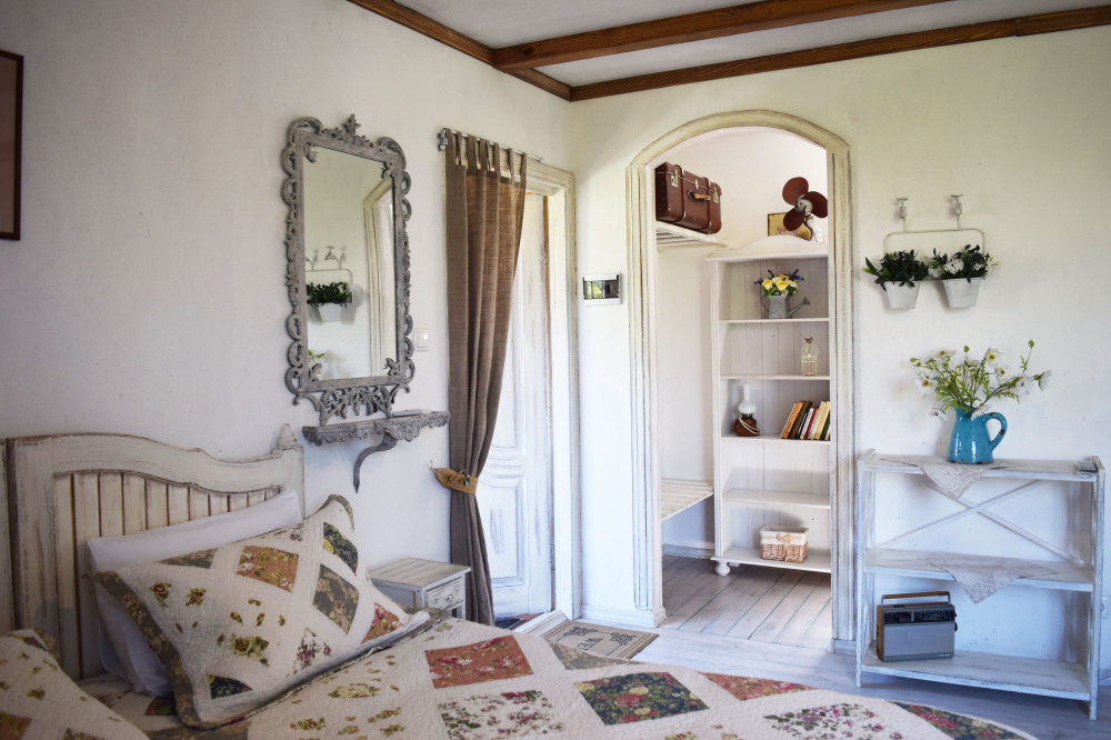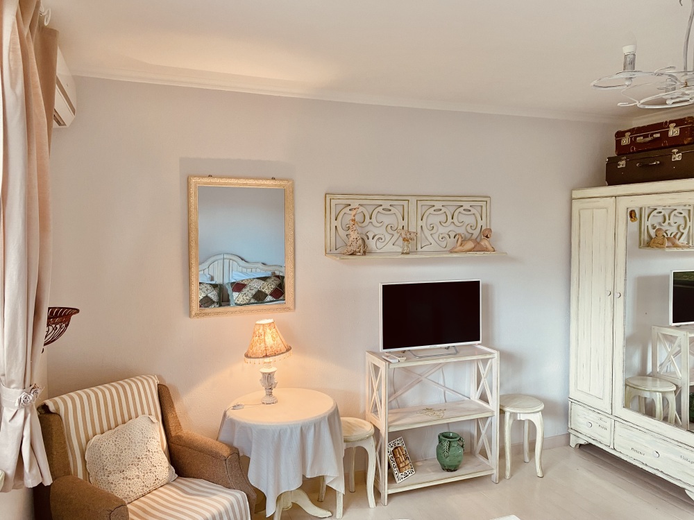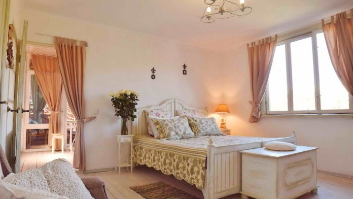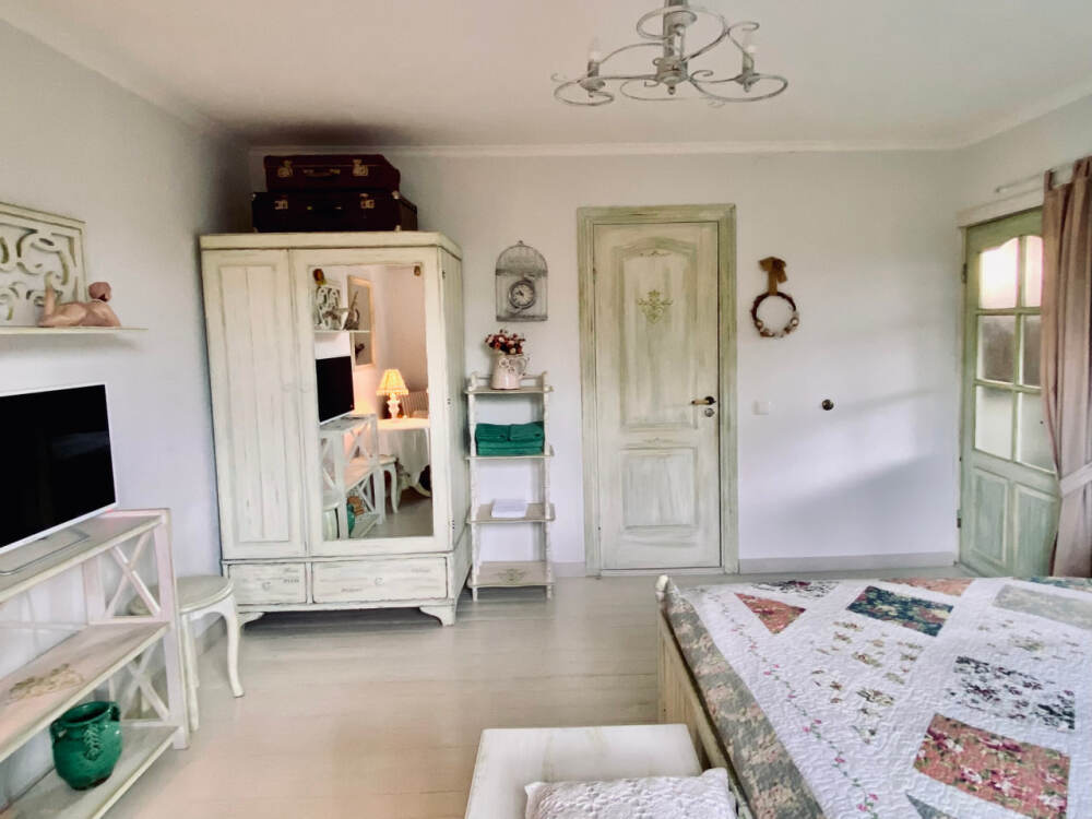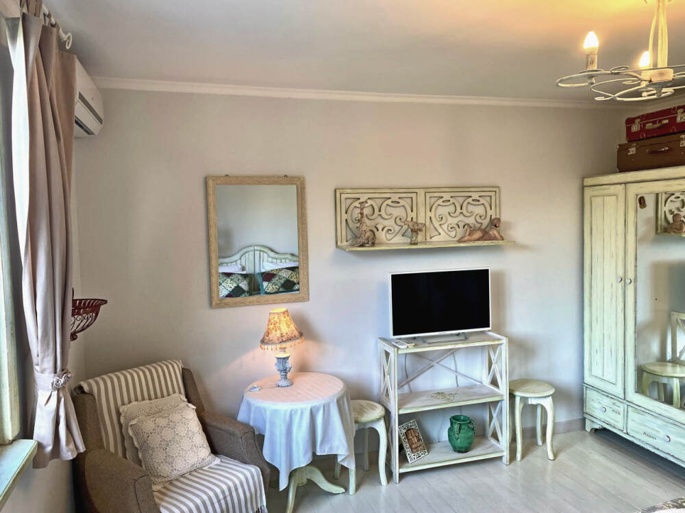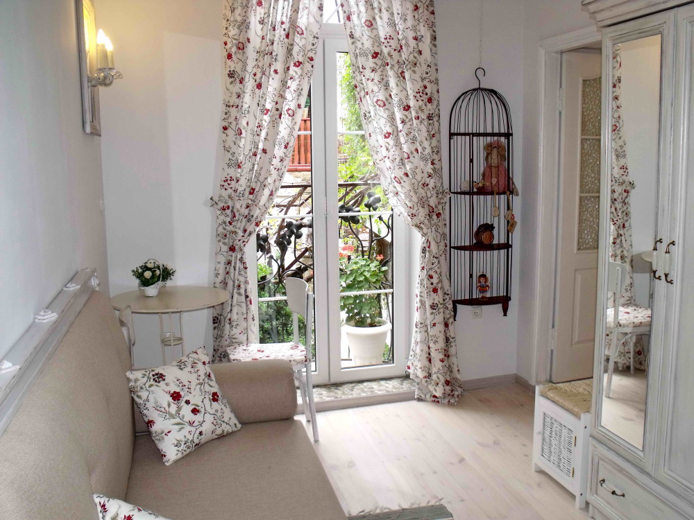 Номер в стиле «шебби», мини-кухня, отдельный вход, «французский балкончик» и большая терраса.