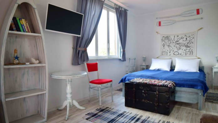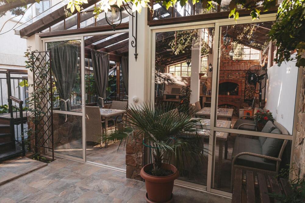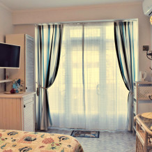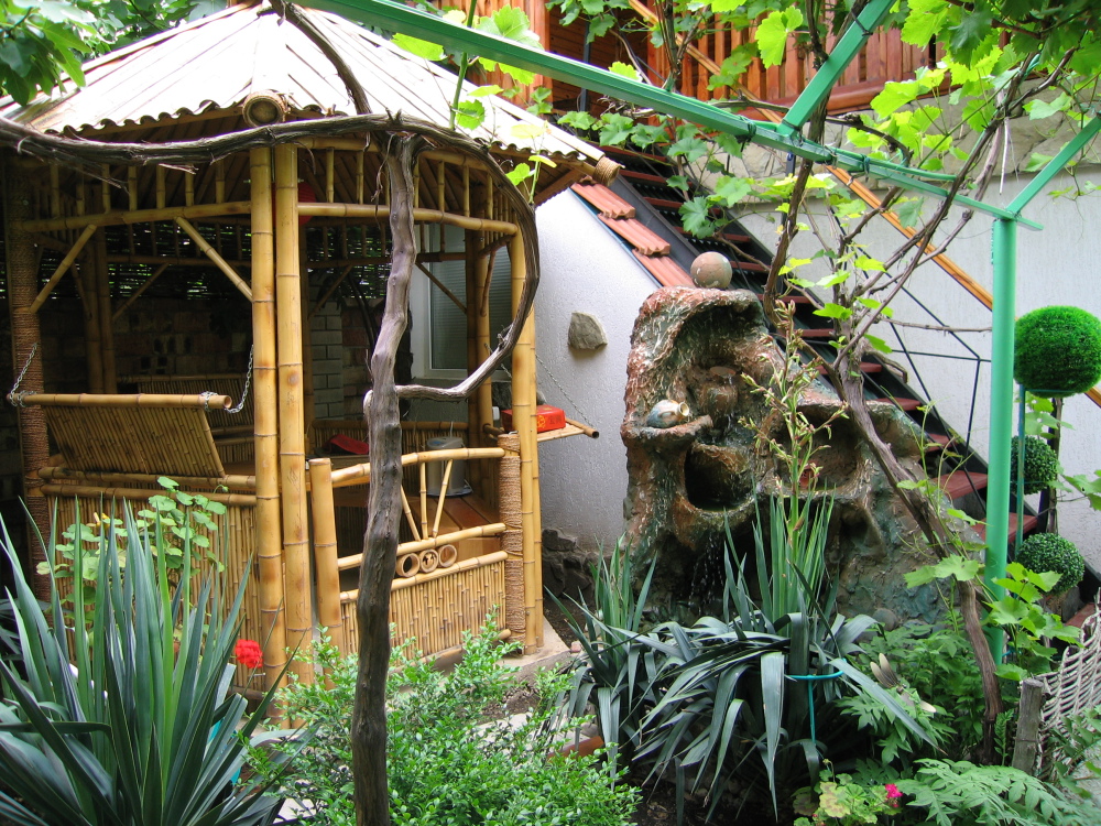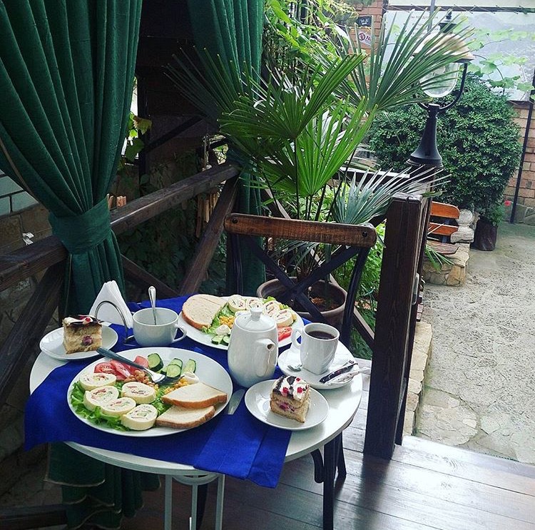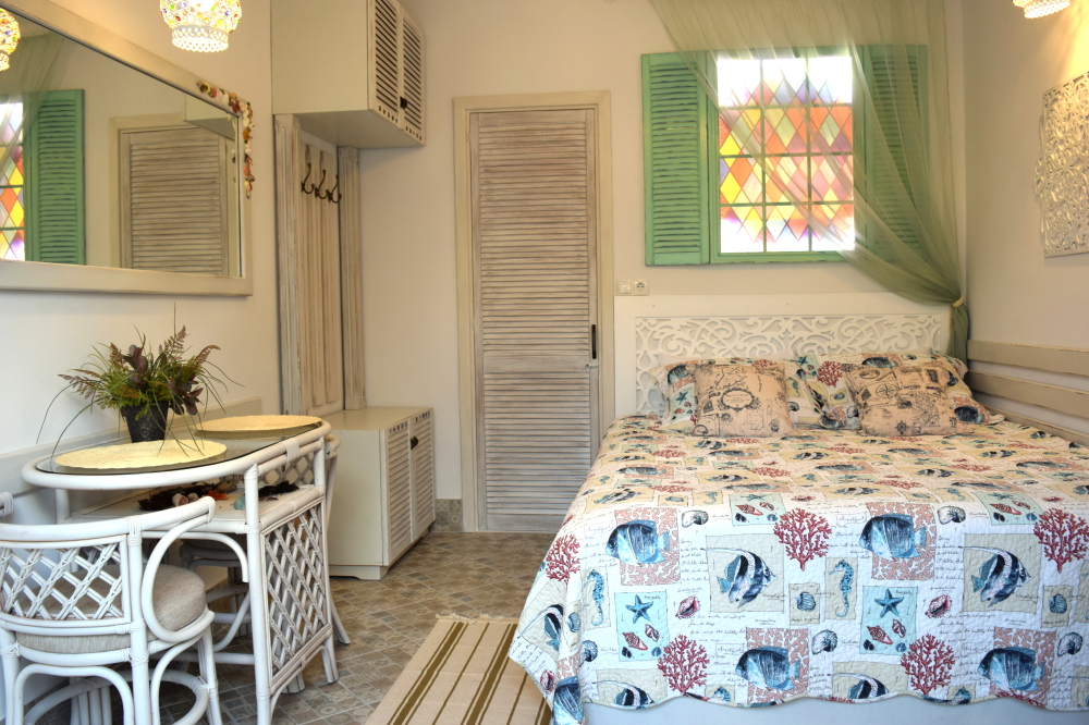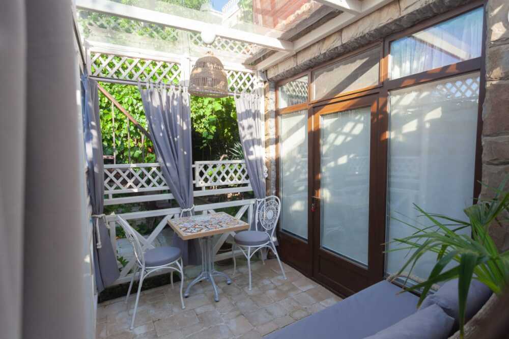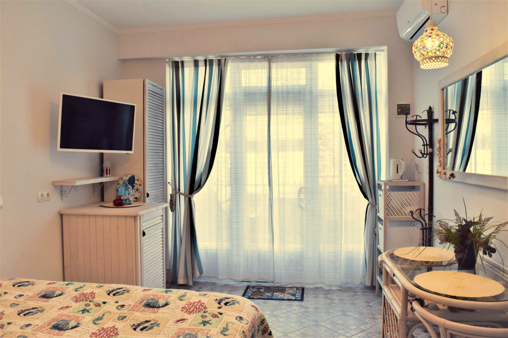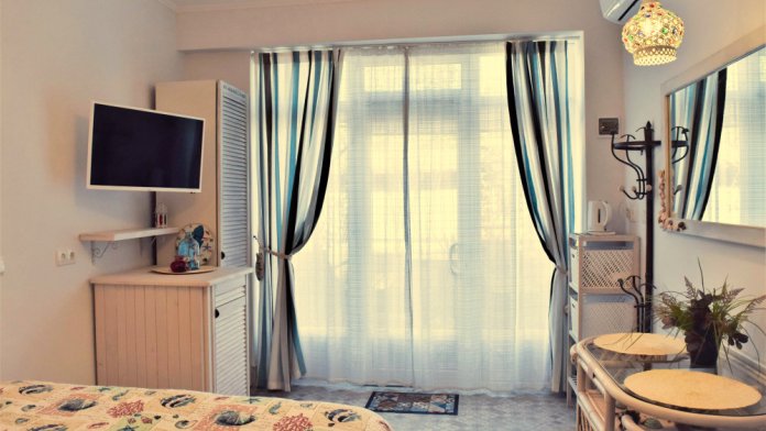 Небольшое количество номеров, с собственными балконами, или столиками на природе, уютный, зеленый дворик с виноградными беседками, журчание фонтана, даже в самую жару дарят ощущение свежести и прохлады. Отличительной особенностью является наличие дизайнер тематических номеров. Здесь можно забронировать номер, выполненный в «морском стиле», «прованс», «кантри», «музыкальны».