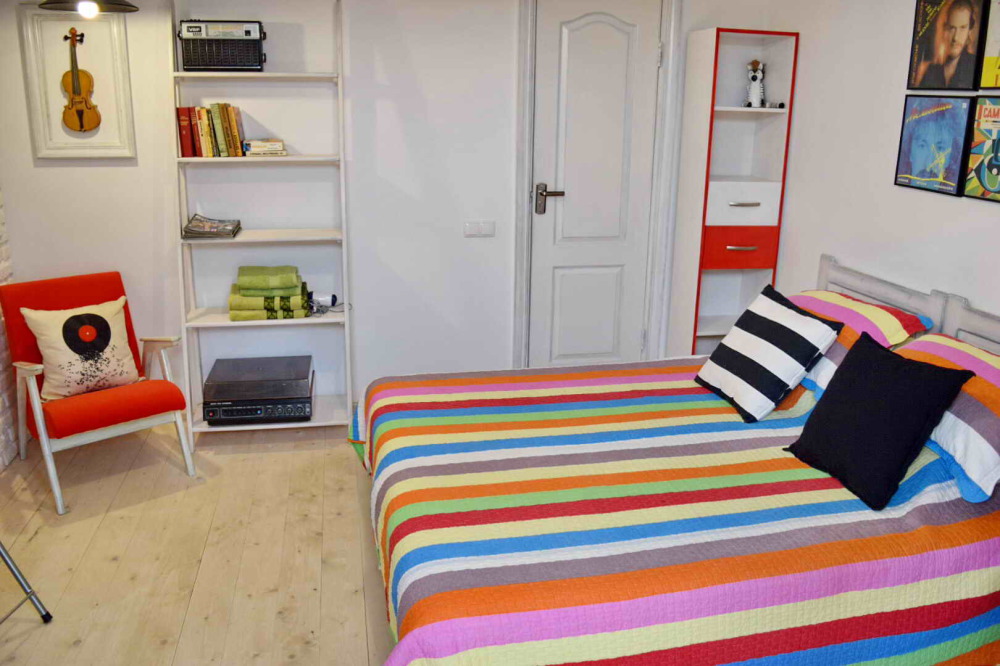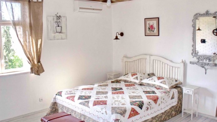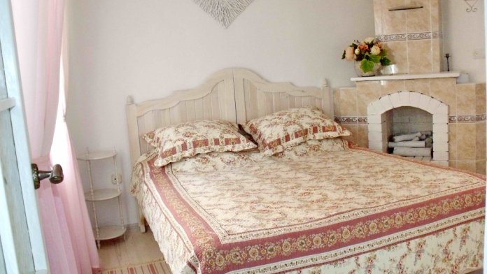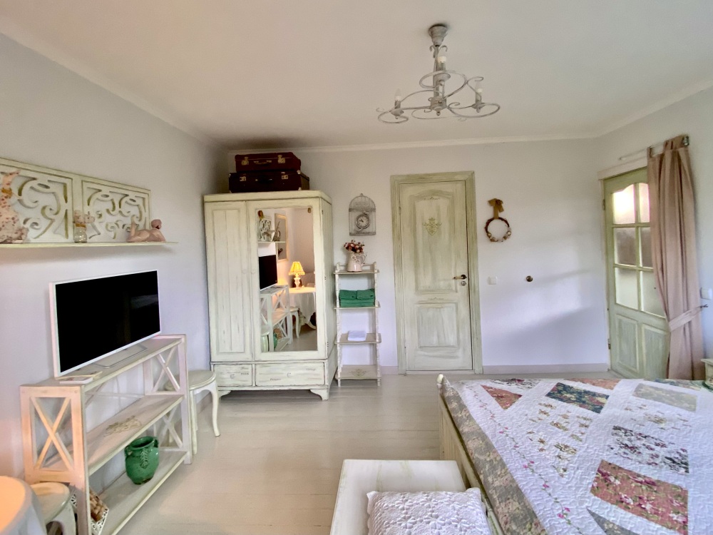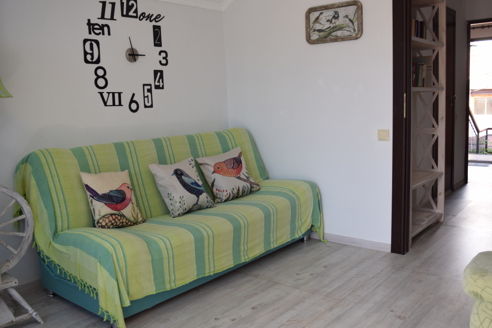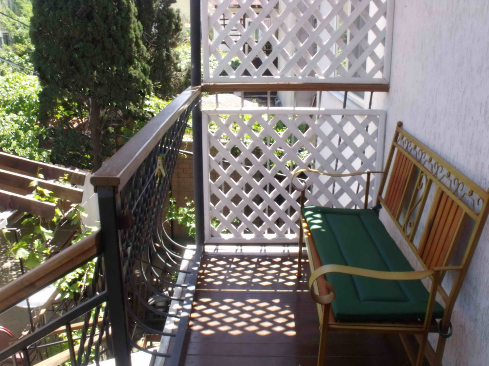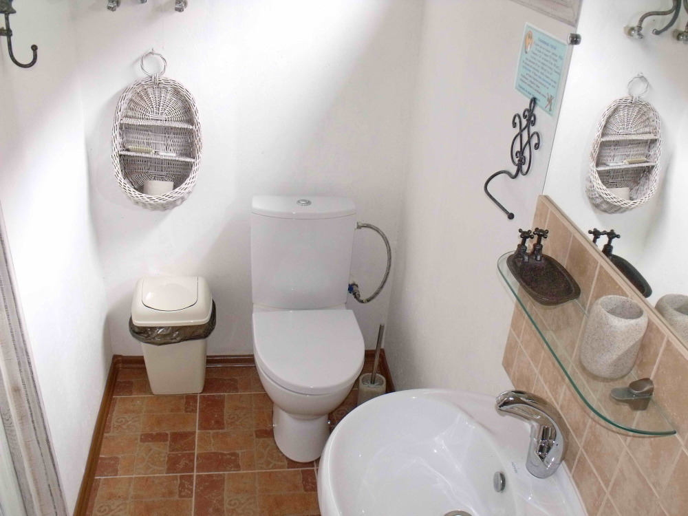 Уютный, стильный номер, имеет все необходимое для комфортного проживания: большая двуспальная кровать с ортопедическим матрасом, шкаф, кофейный столик, посуда,холодильник . В прохладное время года предусмотрен подогрев пола. Номер имеет собственную зону отдыха возле номера ( свой столик возле номера в виноградной беседке).