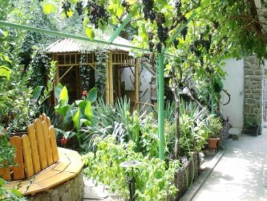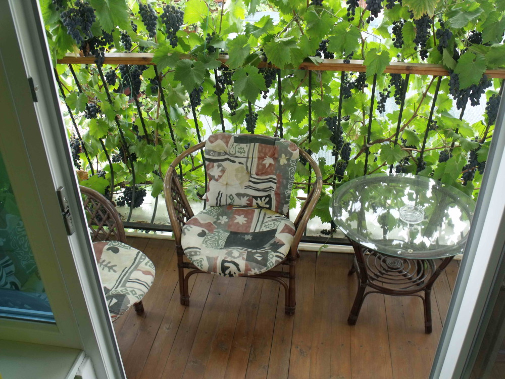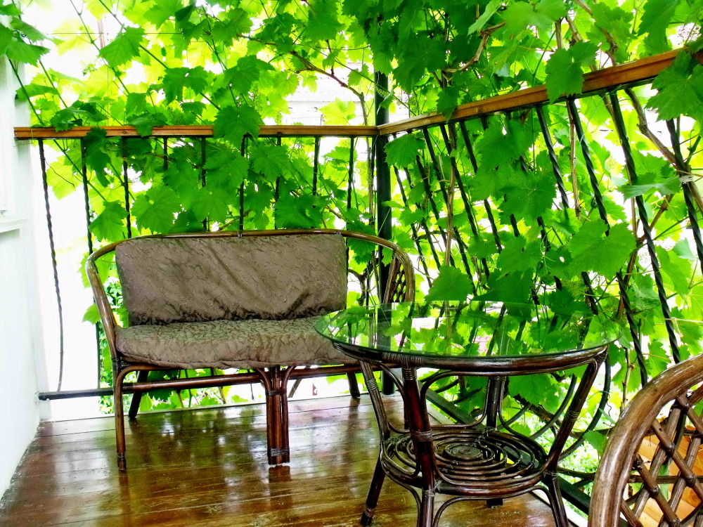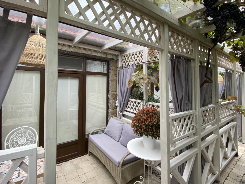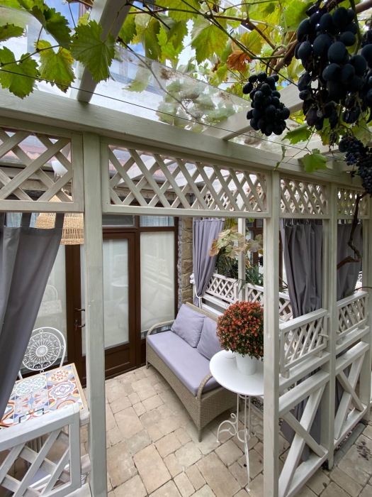 Напротив номера, собственная зона отдыха (отдельный столик в виноградной беседке).