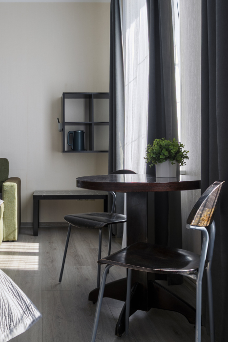 Компактный, но продуманный номер, где есть всё для комфортного проживания. Уютная двуспальная кровать с качественным матрасом обеспечит крепкий сон после дня прогулок или деловых встреч. Это экономное и стильное решение для тех, кто ищет чистую, удобную и полностью оборудованную комнату в сердце города.