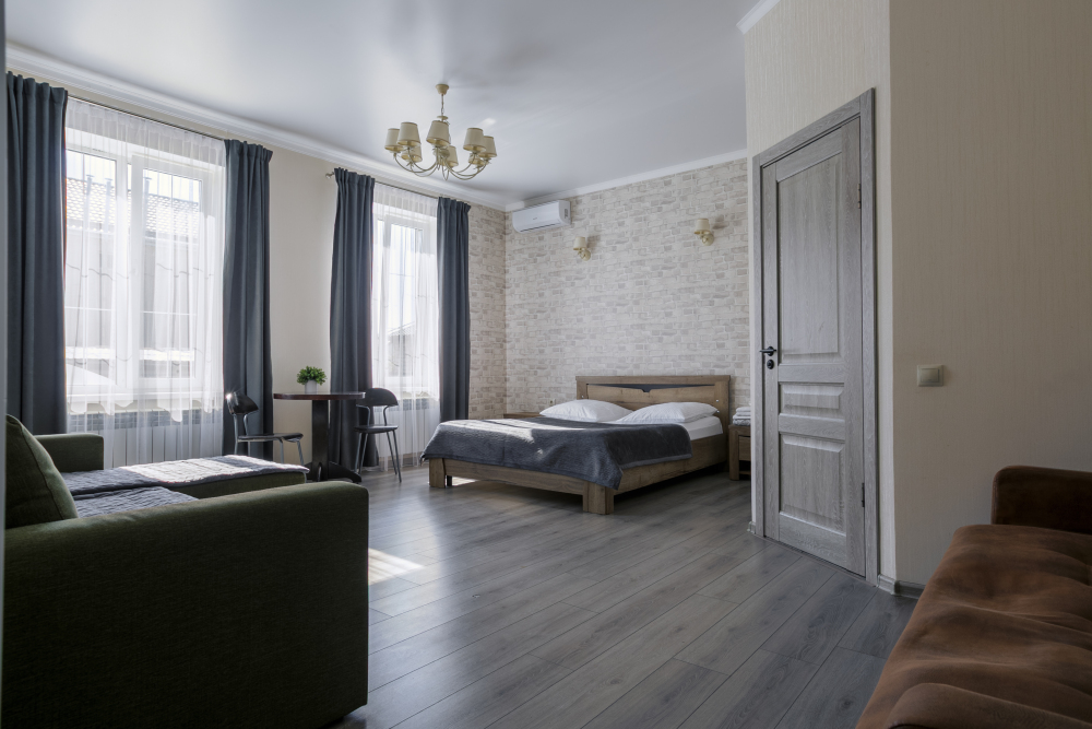 В нашем доме всего 10 комфортабельных номеров, что гарантирует камерную атмосферу и внимание к каждому гостю. В каждом номере есть кондиционер (важно в любое время года), современный телевизор и собственная удобная ванная комната.