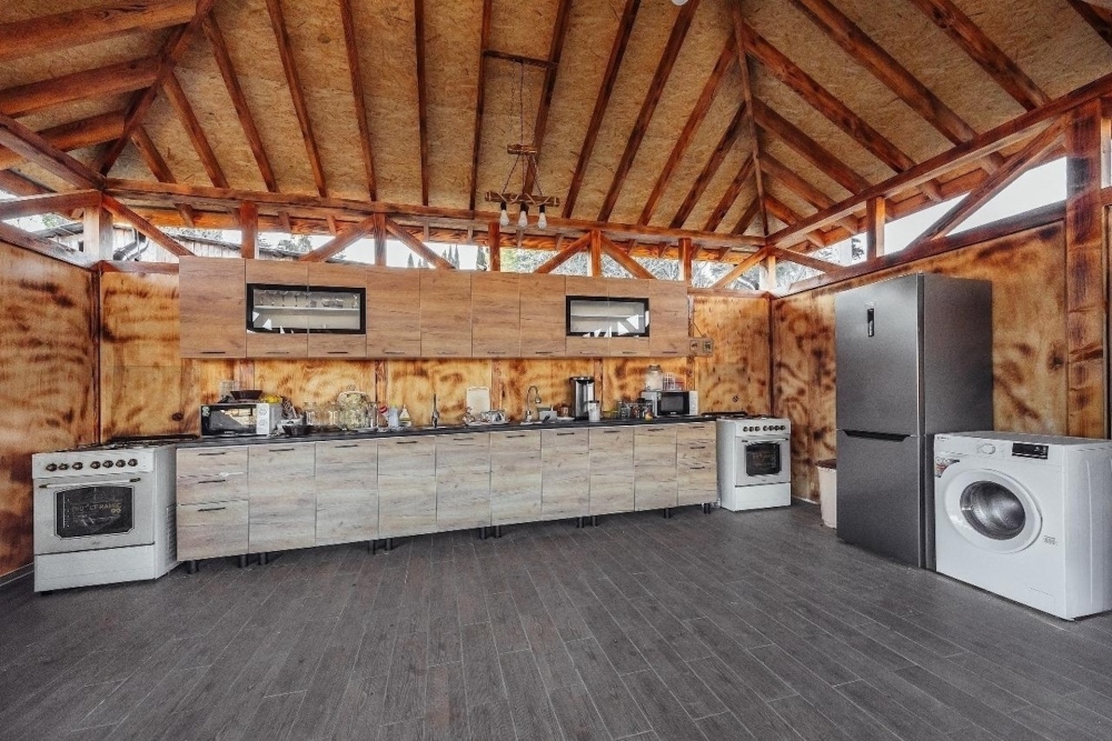 На территории эко-комплекса есть зона отдыха для детей, общая кухня-веранда, полностью оборудованная для самостоятельного приготовления пищи, стиральная машина, сушилки для одежды, зона барбекю. Территория ограждена, по периметру установлены камеры видеонаблюдения в стоимость входит парковка Вашего автомобиля.