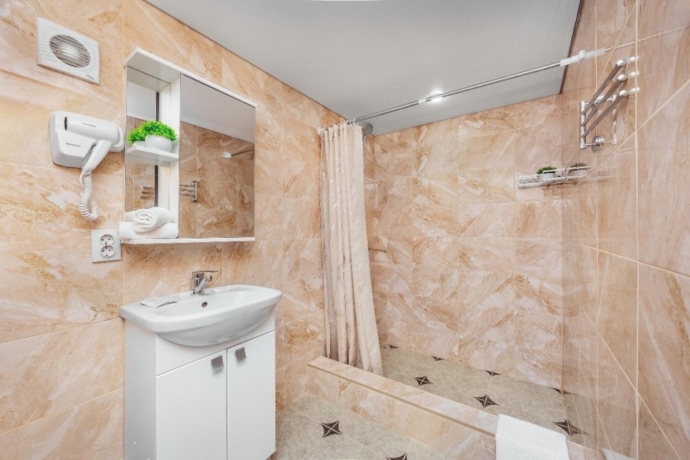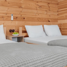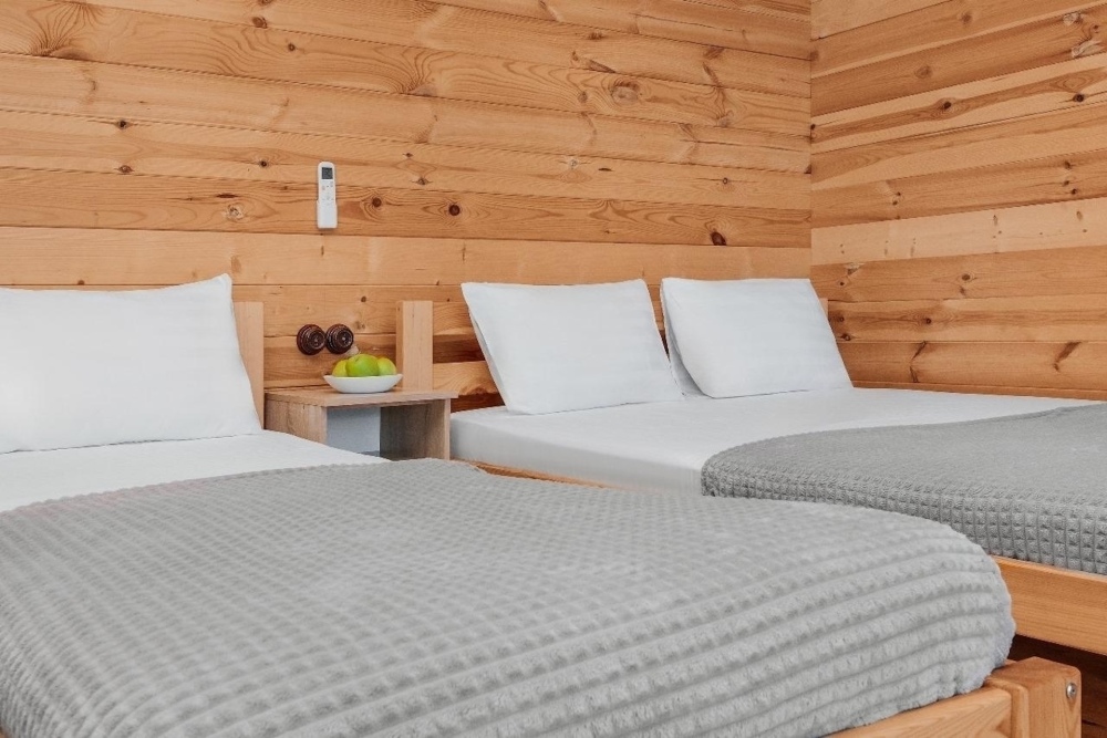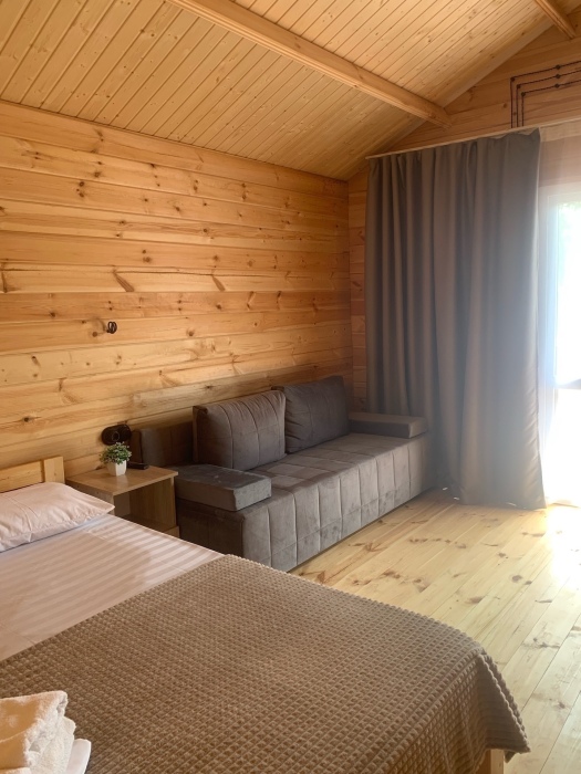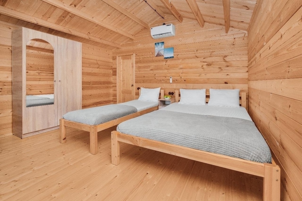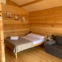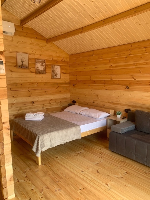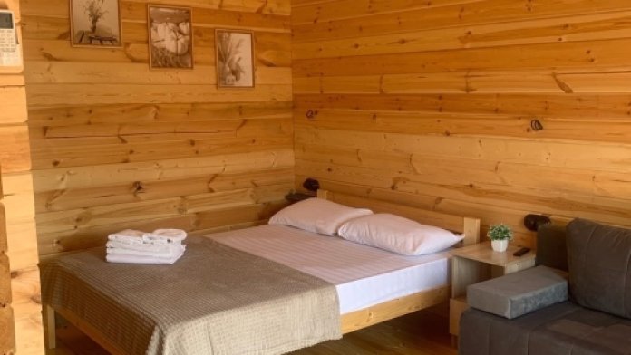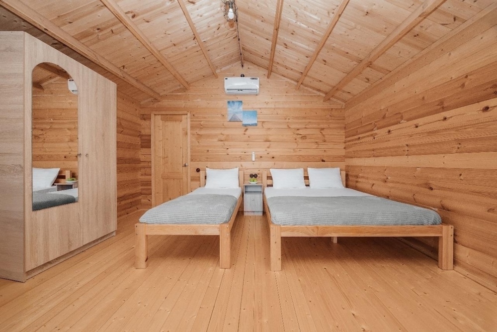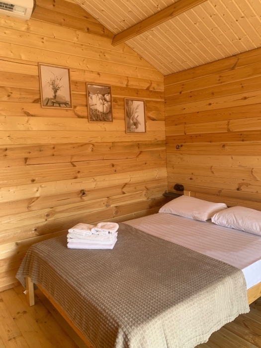 Для наших гостей мы предлагаем коттеджные домики, полностью оборудованные для комфортного проживания. В каждом домике есть фен, чайник, холодильник. В домике есть Смарт- ТВ, WI-FI, также имеется кондиционер и просторная ванная комната. У каждого домика есть своя веранда на которой расположены стол и стулья, для отдыха на свежем воздухе.