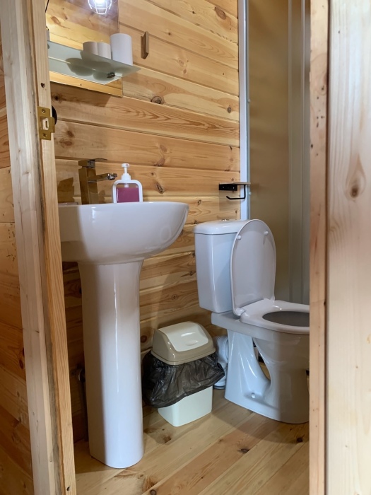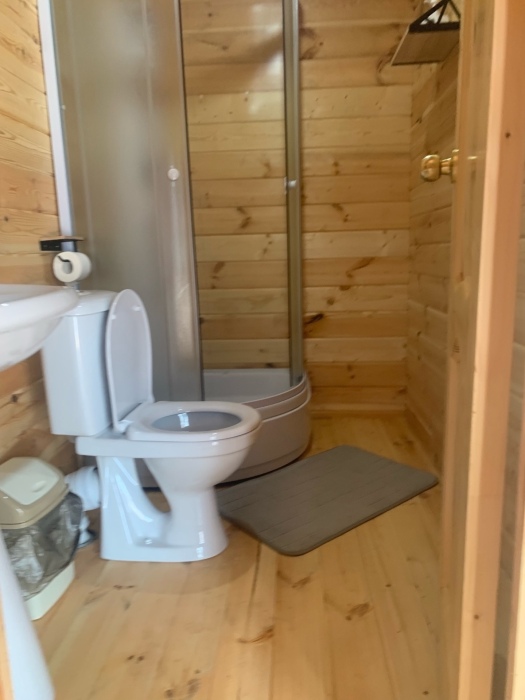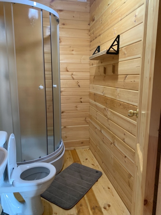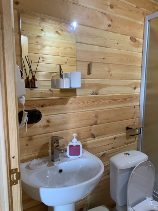 В каждом домике есть фен, чайник, холодильник, Смарт- ТВ, WI-FI, также имеется кондиционер и удобная душевая кабинка. У каждого домика есть своя веранда на которой расположены стол и стулья для отдыха на свежем воздухе.