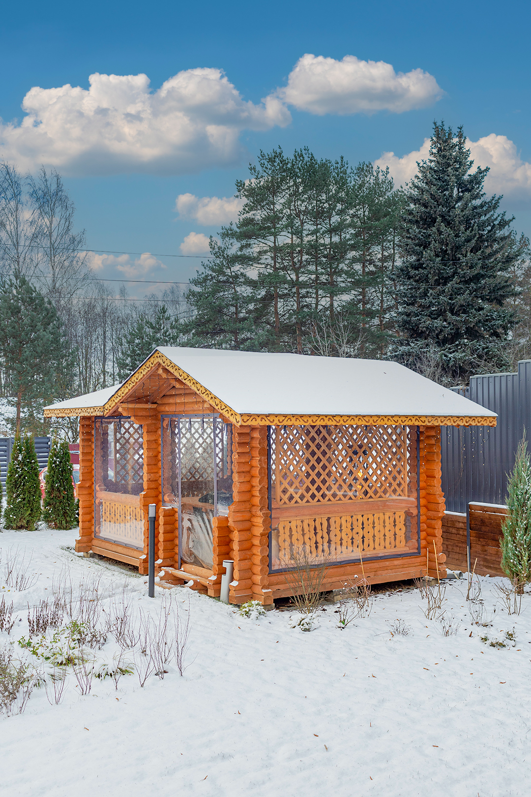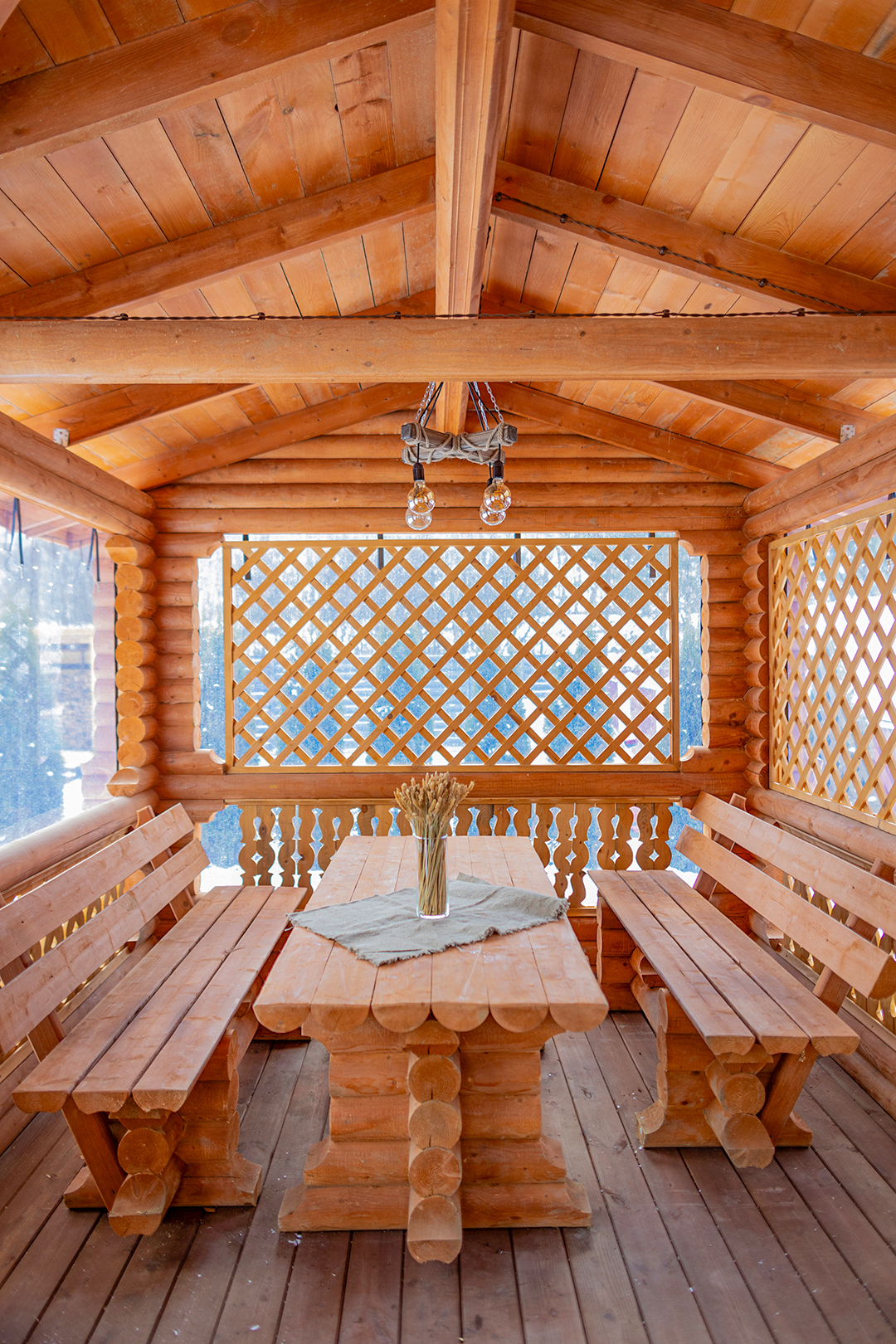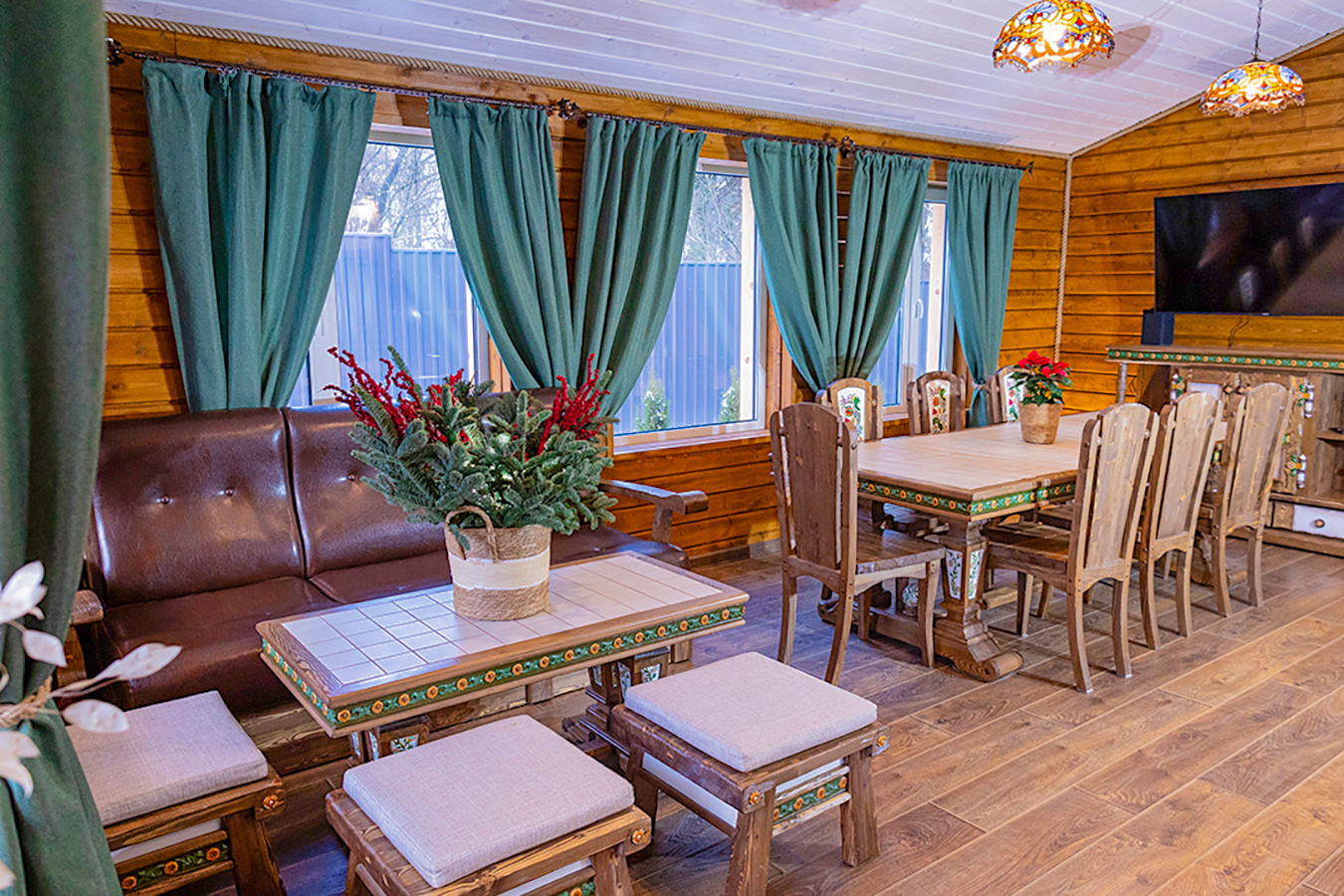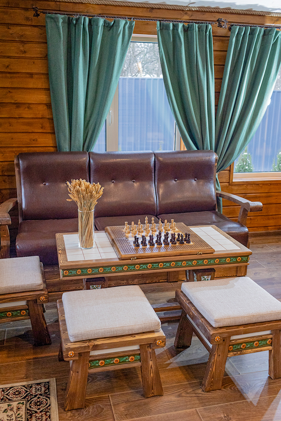 - Всё необходимое для гостей: тапочки, халаты, полотенца, гигиенические принадлежности, веники, травы, ароматические масла, шампуры, уголь, дрова, розжиг, специи, чай и кофе, лёд.