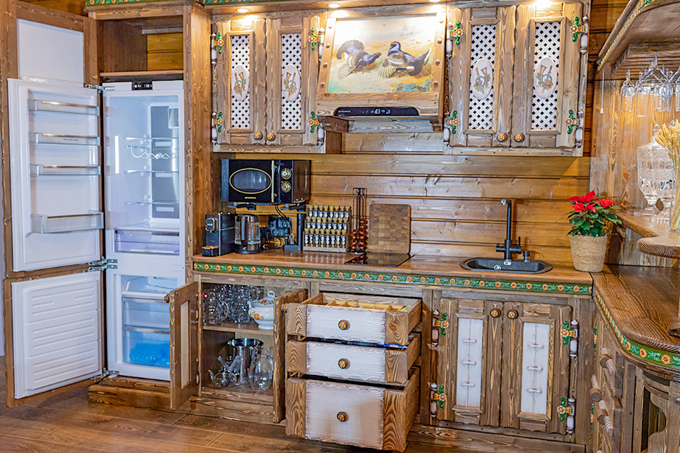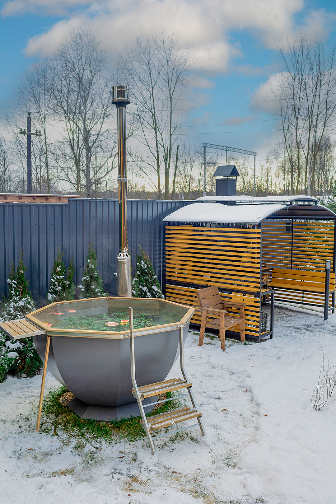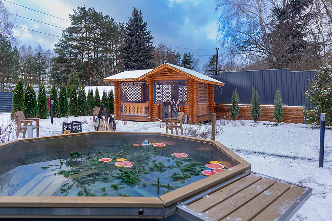 - Всё необходимое для гостей: тапочки, халаты, полотенца, гигиенические принадлежности, веники, травы, ароматические масла, шампуры, уголь, дрова, розжиг, специи, чай и кофе, лёд.