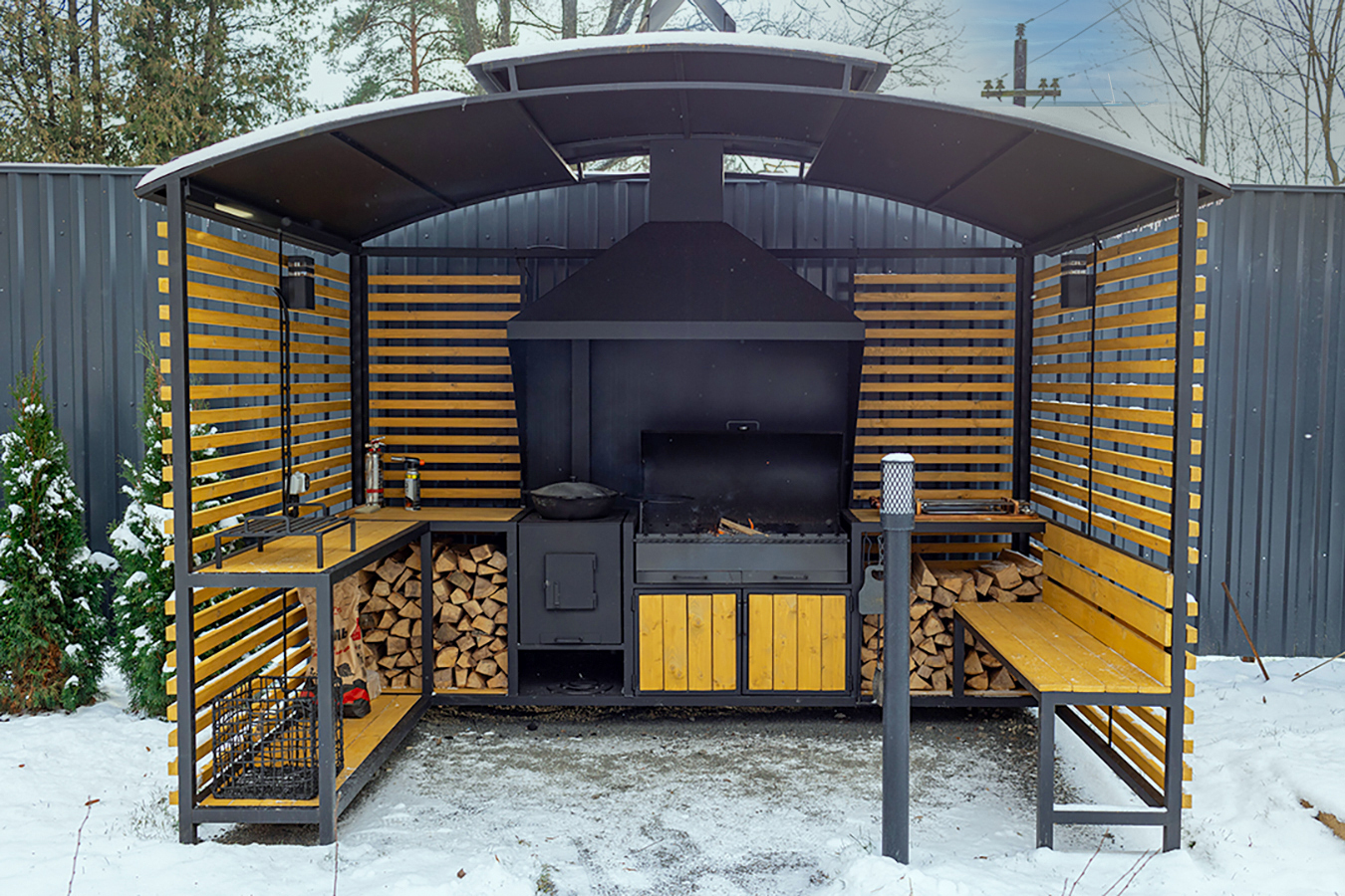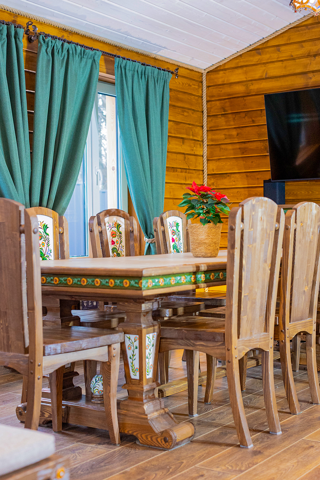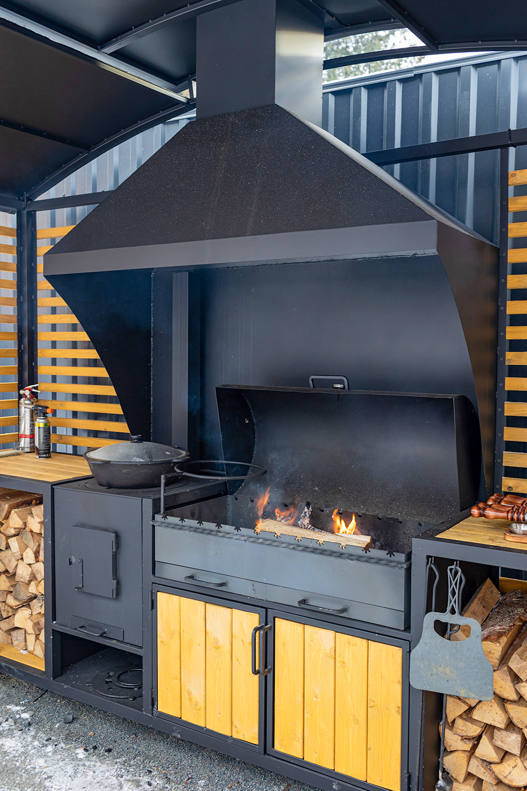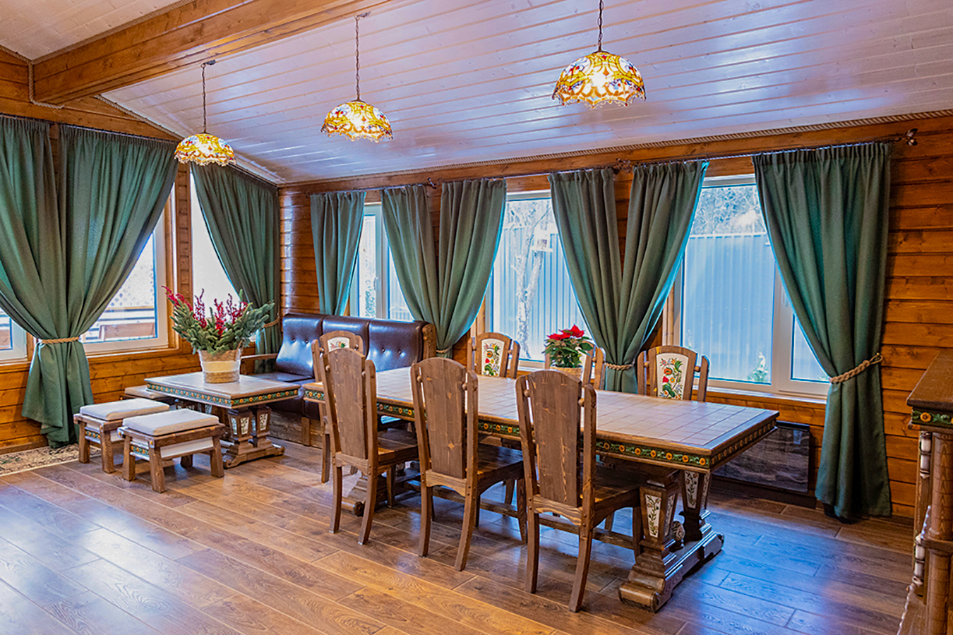 - Всё необходимое для гостей: тапочки, халаты, полотенца, гигиенические принадлежности, веники, травы, ароматические масла, шампуры, уголь, дрова, розжиг, специи, чай и кофе, лёд.