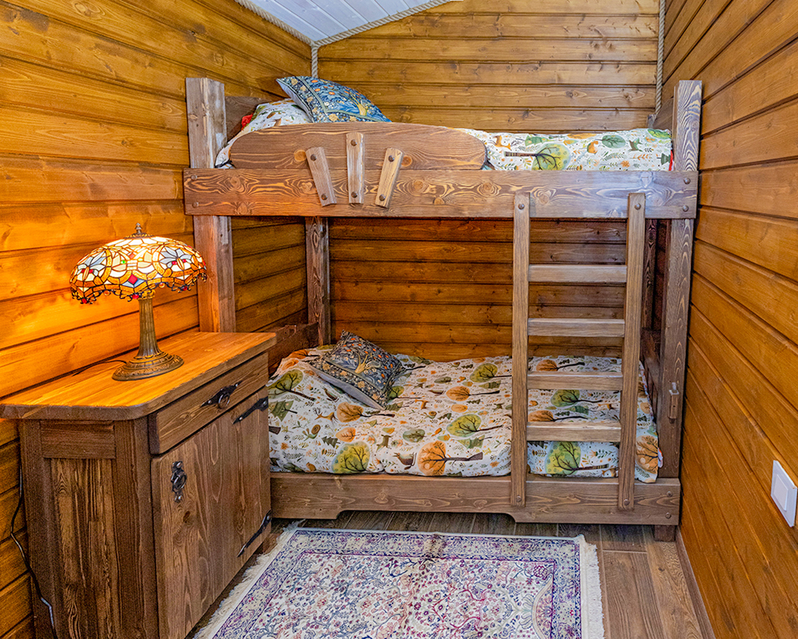 - 3 отдельные спальни. Две с двуспальными кроватями и одна с двухъярусной кроватью;