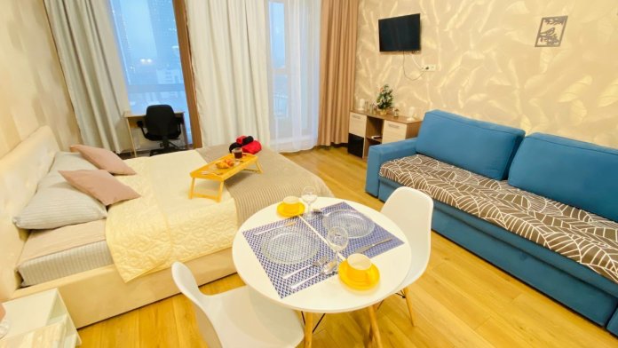 Уютные апартаменты, новая, комфортная мебель, отличная бытовая техника, большие панорамные окна в пол.