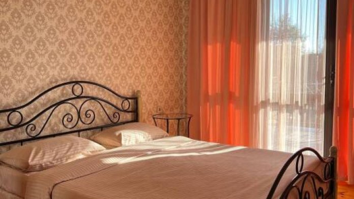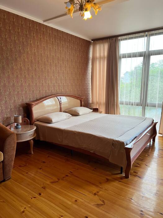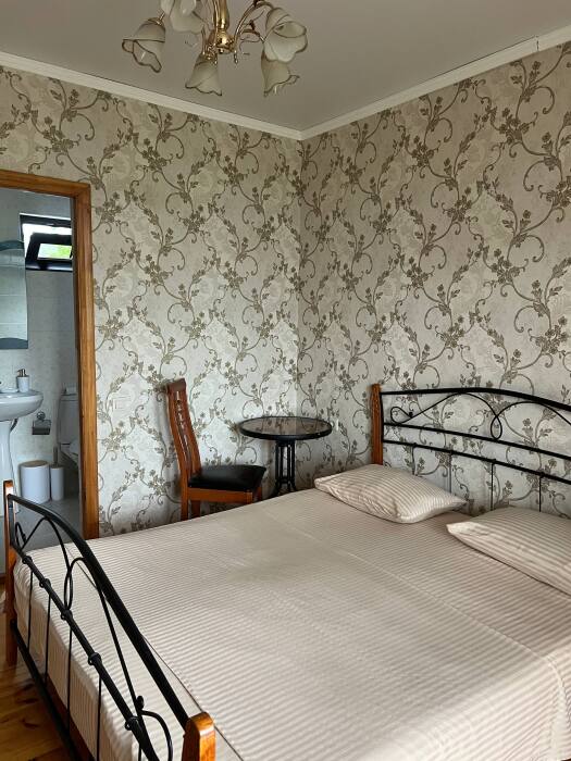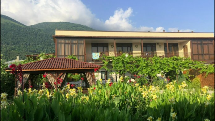 На территории гостевого дома есть небольшой сад, утопающий в зелени, кафе-столовая, беседка с телевизором, мангал.