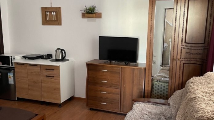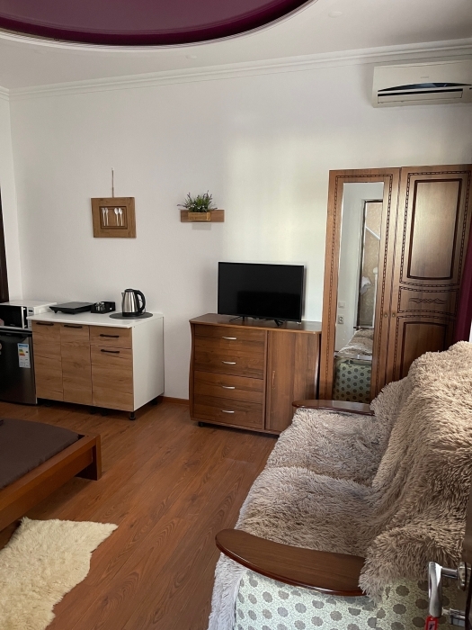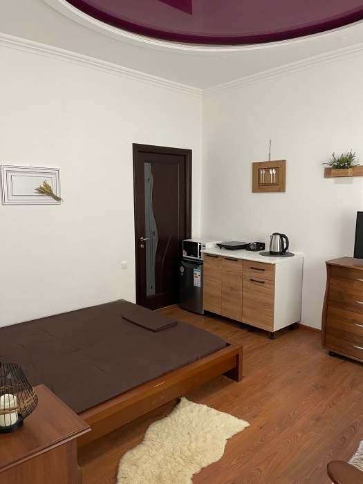 Уютный номер люкс со своей кухней. Номер единственный на этаже, комнаты раздельные.