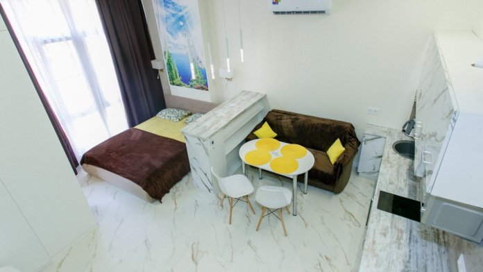 Расположение дома очень хорошее, рядом магазины, кафе, до моря пешком 10 минут. В квартире сделан дизайнерский ремонт, все необходимое есть. Рядом находятся магазины ,столовые кафе ,до моря 10 минут пешком, как раз мимо кафе и развлечений.