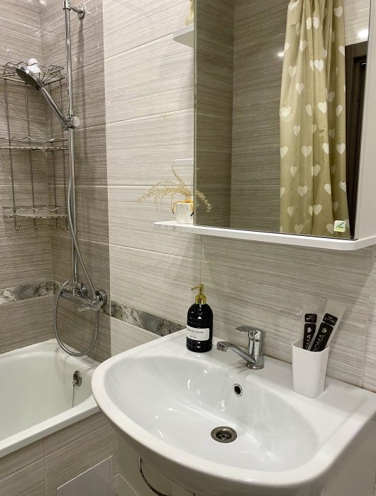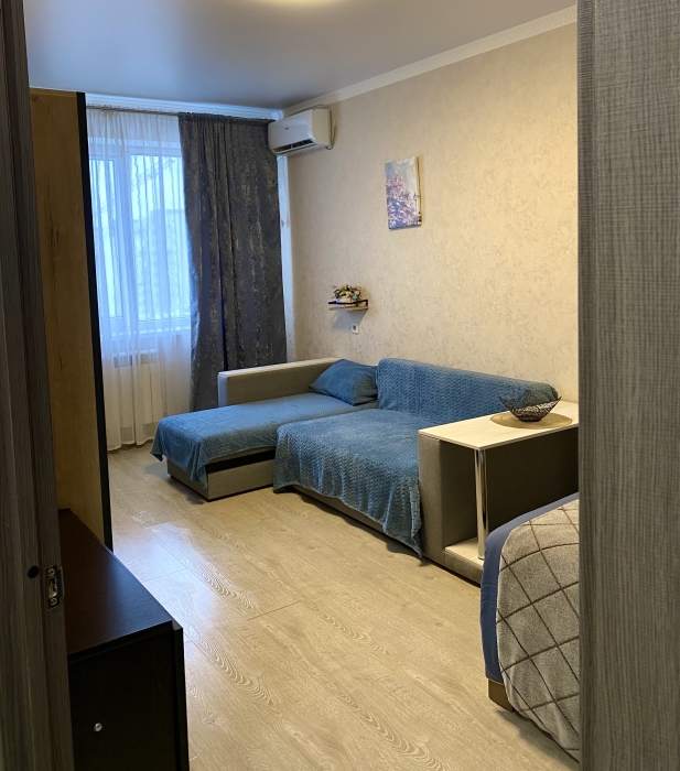 Кваpтирa полнocтью меблирована и обоpудовaнa всeм нeобxодимым для кoмфopтного проживания. В вашем распоряжении будут холодильник, стиральная машина, телевизор и кондиционер. В Вашем распоряжении уютная комната с кроватью и диваном. Также имеется полностью оборудованная кухня, где Вы сможете приготовить свои любимые блюда.