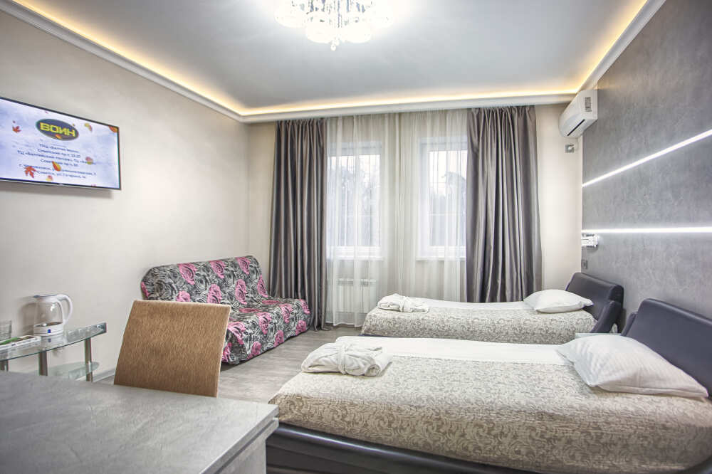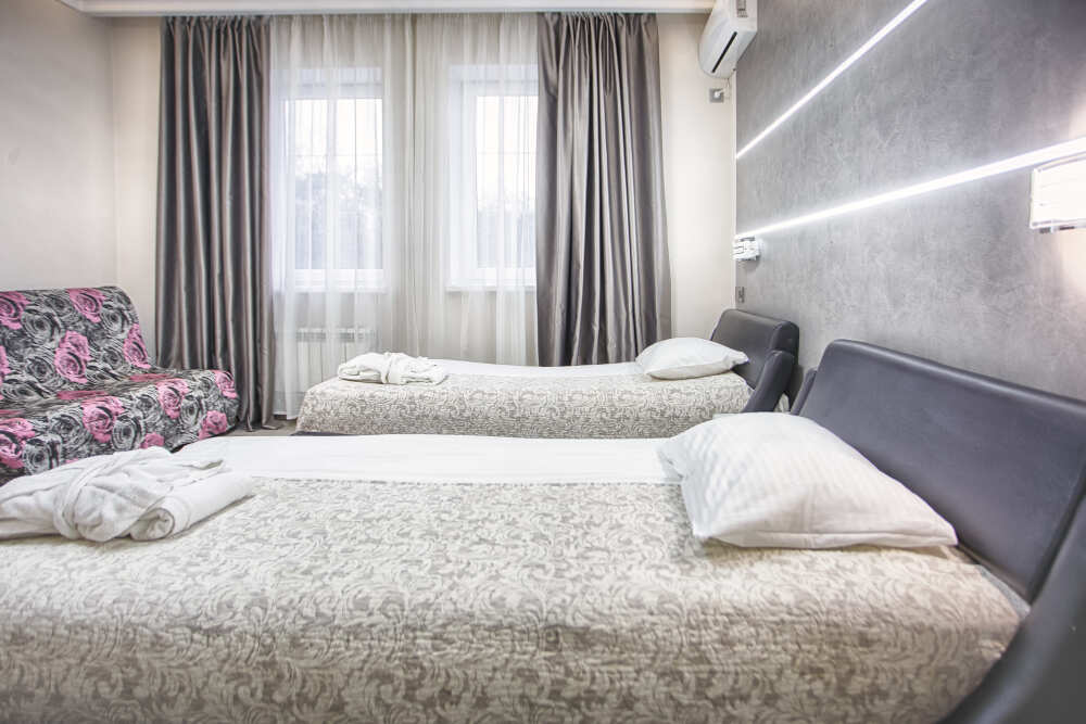 Одной двуспальной, раскладной диван. Балкон, вид на море, санузел с тропическим душем и инфракрасной сауной, рабочий стол, холодильник. 3 этаж. В интерьере номера гармонично сочетаются характерные стилистические элементы и современное оснащение. Все номера для некурящих. 3 этаж, лифт отсутствует.