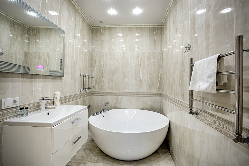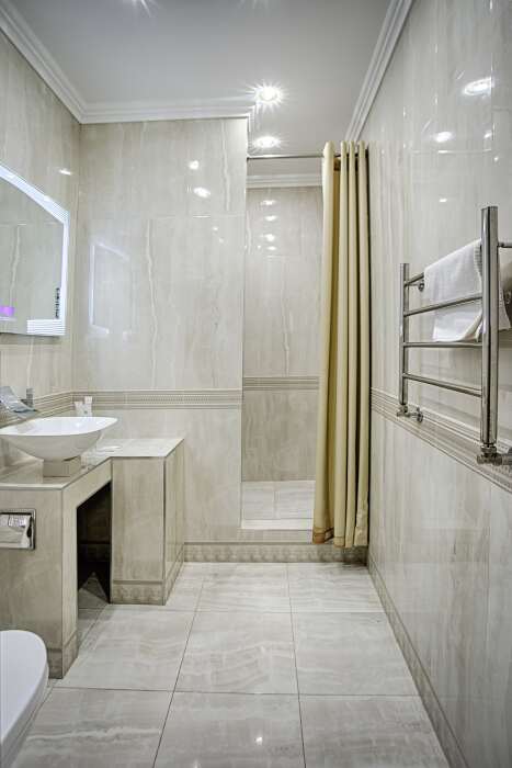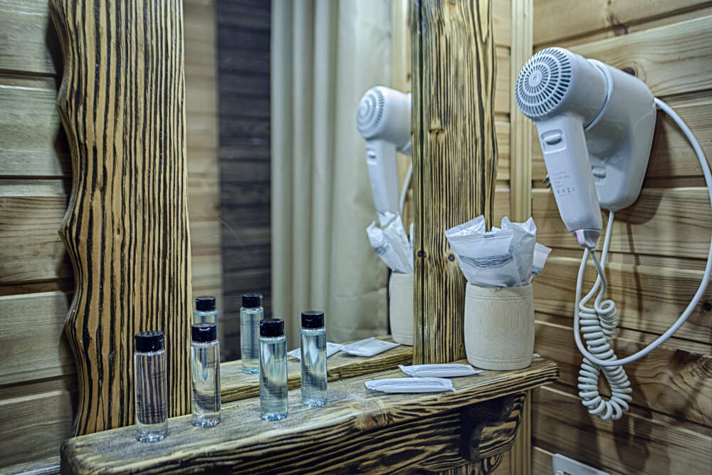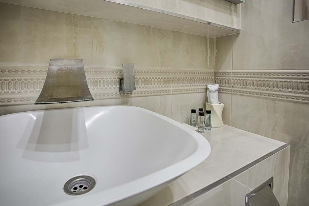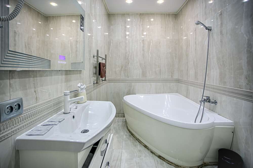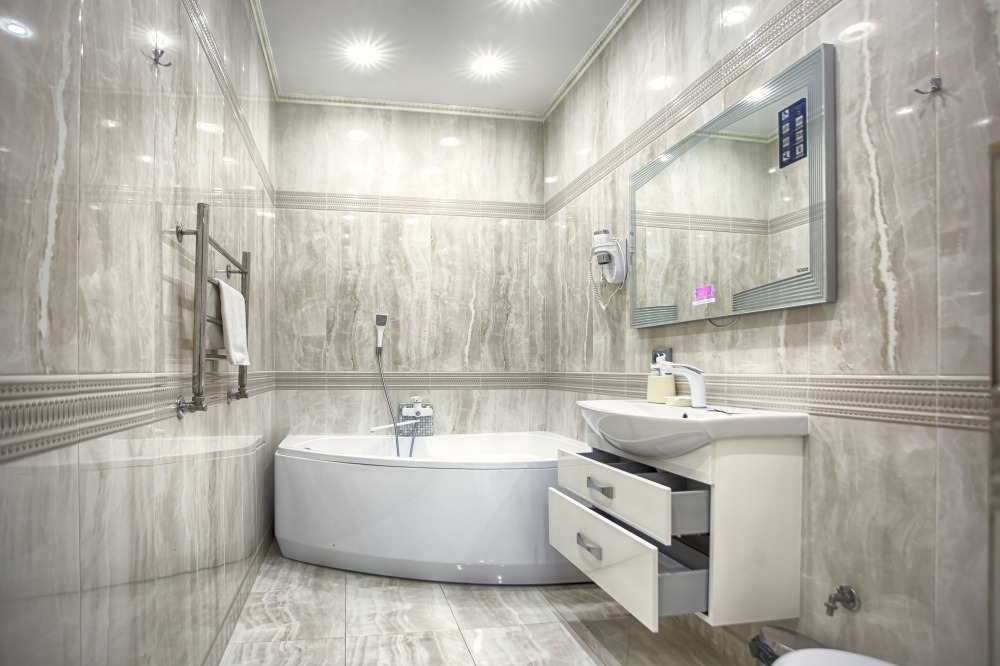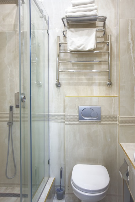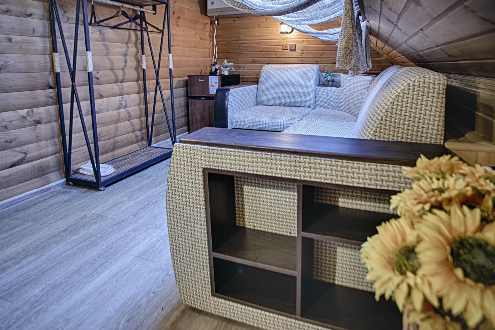 холодильник, чайник. В интерьере номера гармонично сочетаются