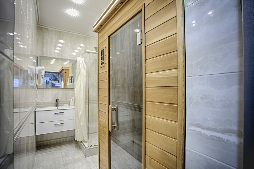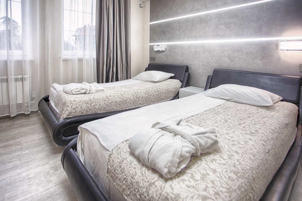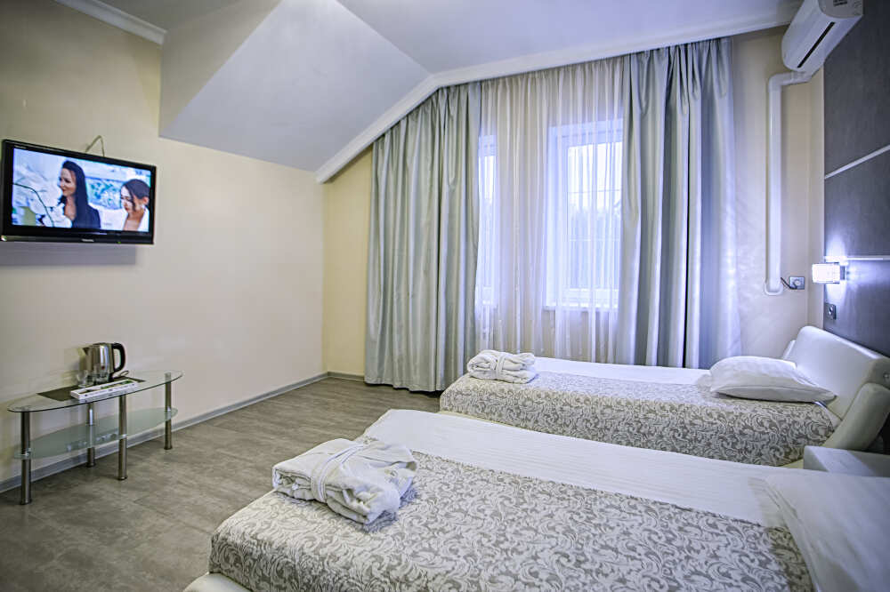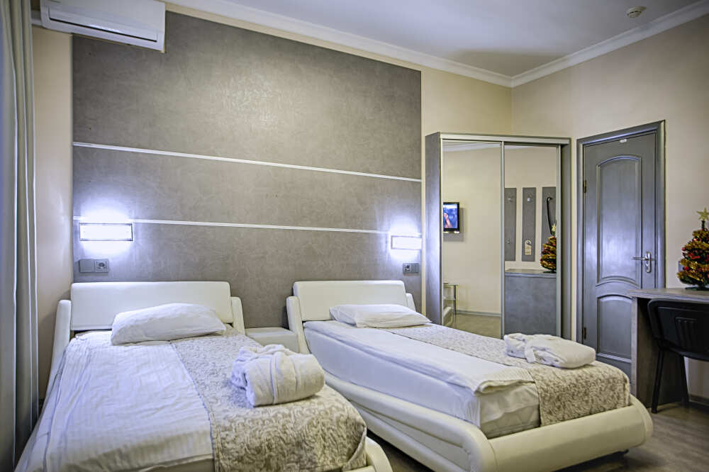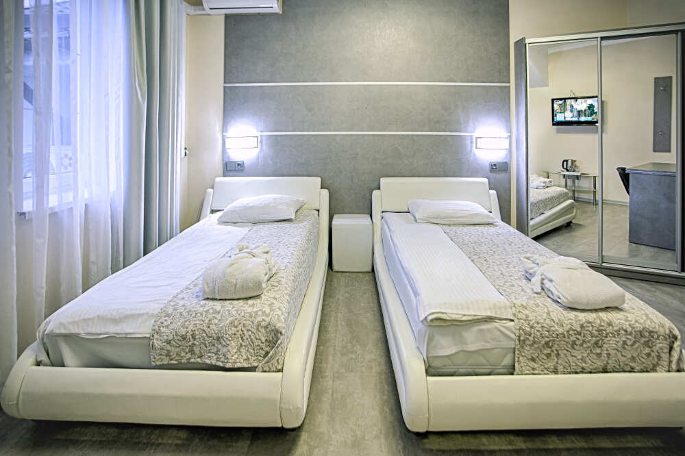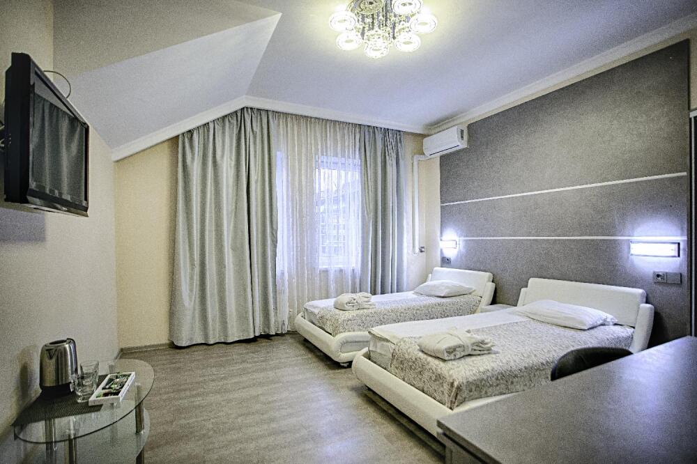 Одной двуспальной или двумя односпальными кроватями. Мансарда, вид на море, сан узел с тропическим душем и инфракрасной сауной, холодильник. 4 этаж. До 2 человек. В интерьере номера гармонично сочетаются характерные стилистические элементы и современное оснащение. Все номера для некурящих