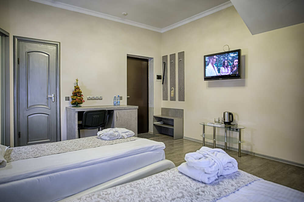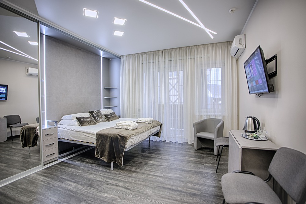 В наших апартаментах всегда приятная атмосфера уюта и комфорта. Все номера оборудованы кондиционерами, показывают более 70 каналов телевидения, есть скоростной интернет и множество приятных мелочей для вашей компании. Мы предусмотрели гостевую парковку, охранное видео наблюдение по периметру и в местах общего пользования.