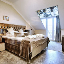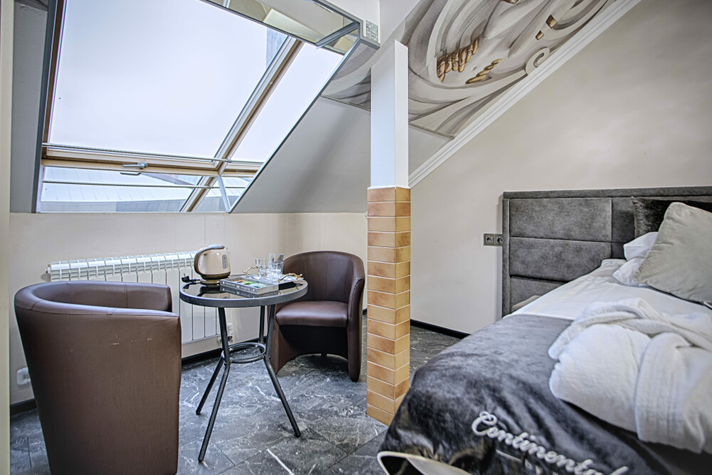 Одной двуспальной кроватью или раскладным диваном с хорошим спальным местом вид на море, сан узел с двухместной круглая ванна, рабочий стол, холодильник. 4 этаж. В интерьере номера гармонично сочетаются характерные стилистические элементы и современное оснащение. 4 этаж, лифт отсутствует, мансарда.