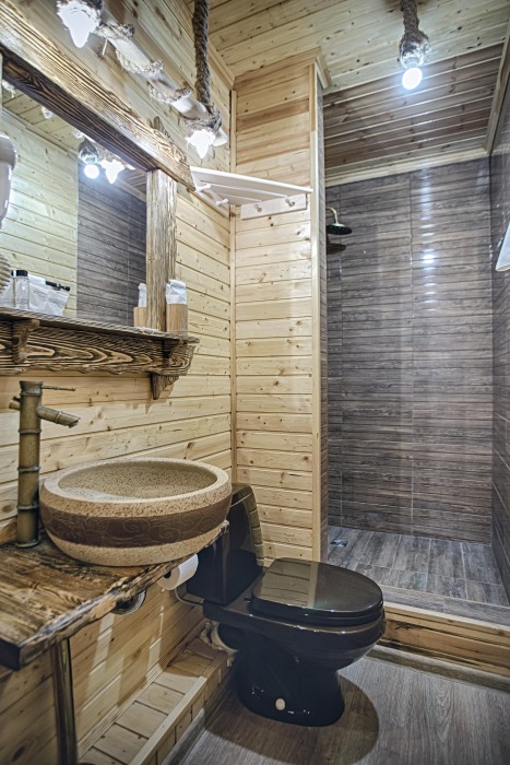 Вид на парк, санузел с тропическим душем, рабочий стол, холодильник, чайник. В интерьере номера гармонично сочетаются характерные стилистические элементы и современное оснащение. Все номера для некурящих