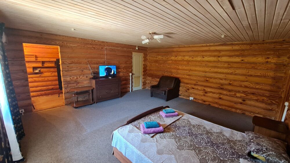 Номера расположены в двухэтажном корпусе гостевого дома. Площадь составляет 50 кв. м. С комфортом может разместиться семья из 4-х человек.