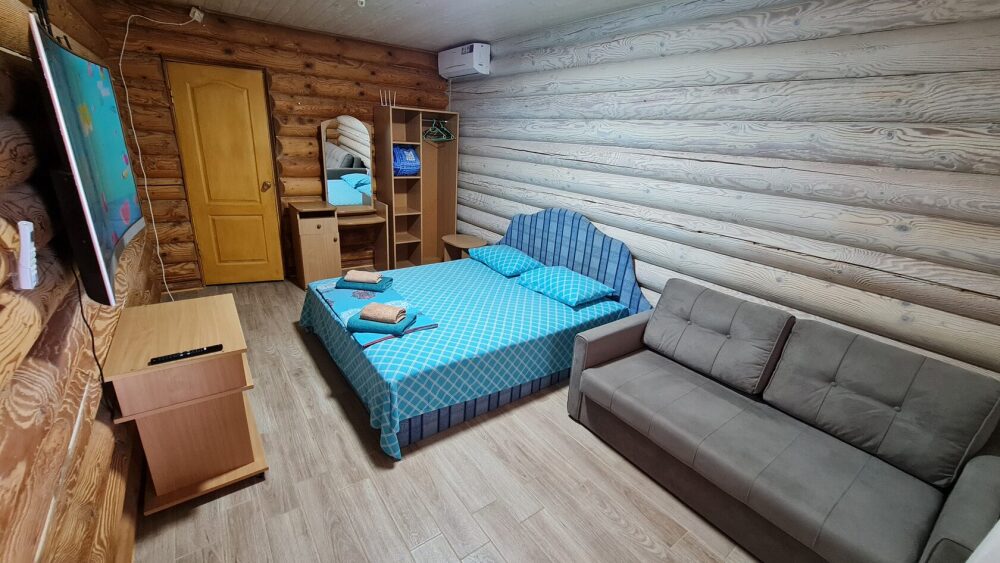 Удобства: двухспальная кровать, кресло-кровать или диван, ТВ, холодильник, кондиционер, душ, туалет, Wi-fi