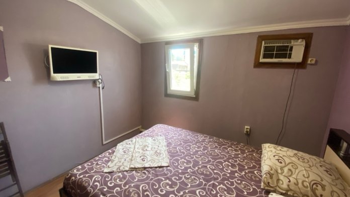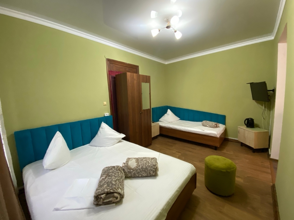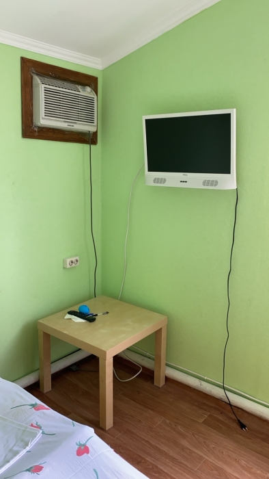 В номере эконом-класса есть телевизор, кондиционер, санузел на этаже общий.