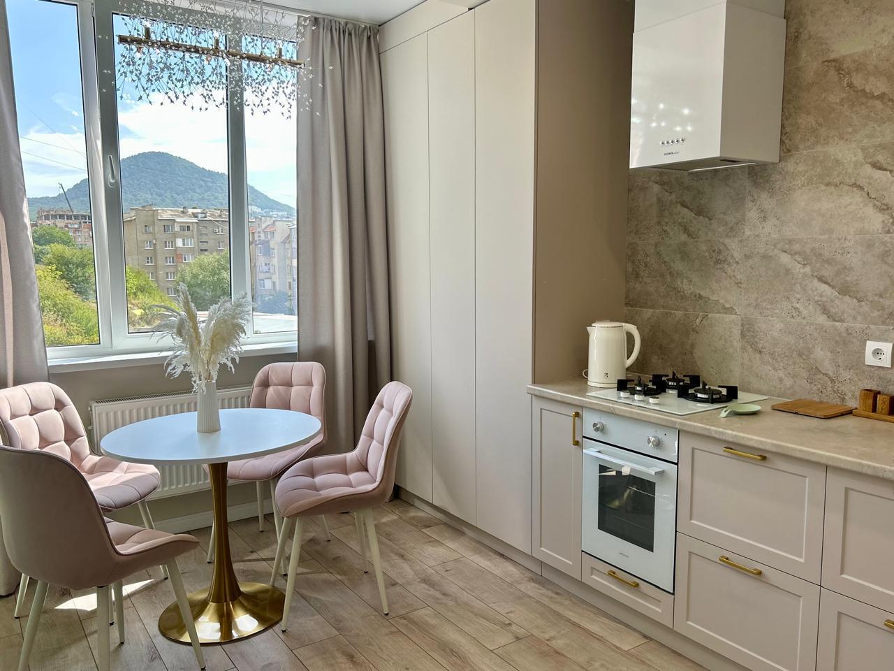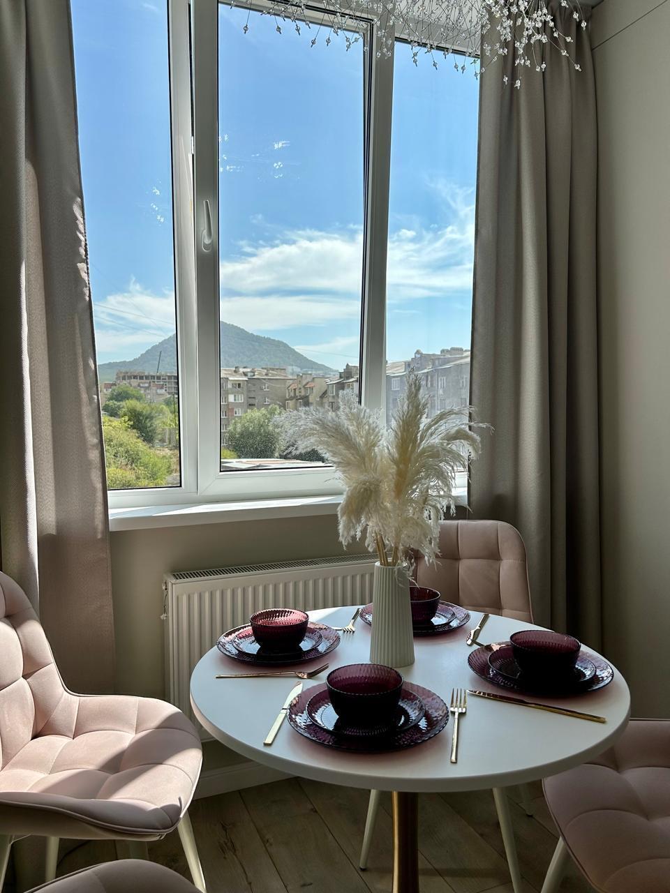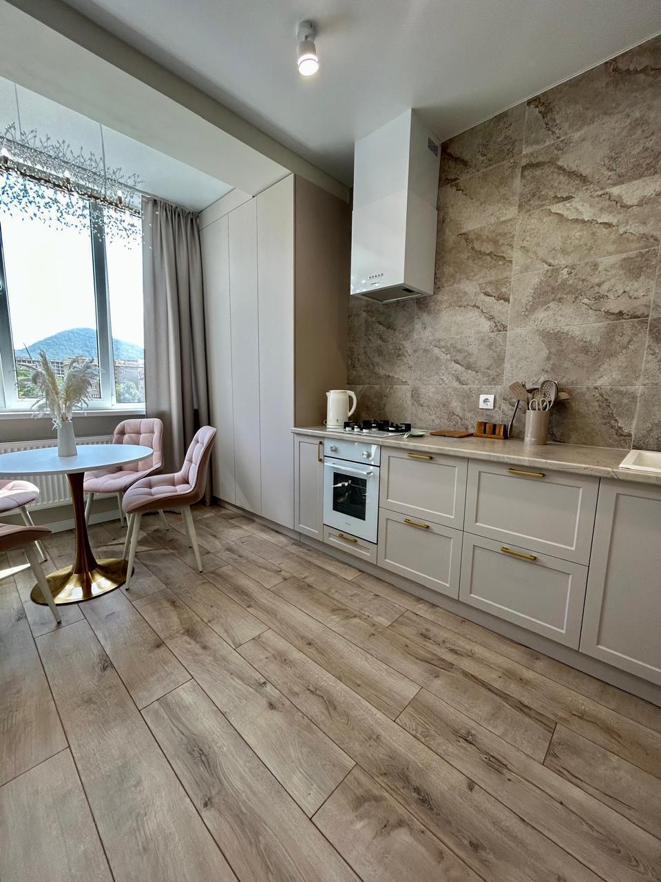 Уютная, светлая квартира в новом доме с видом на горы. Свежий дизайнерский ремонт. В доме есть лифт, индивидуальное отопление, детская площадка во дворе, большая парковка. Окна во двор, Вас ждет тишина и покой.